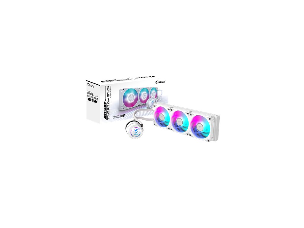 AORUS WATERFORCE II 360 ICE Fan EZ-Chain: DIY-friendly fan design with slide-in interlocking mechanism and DAISY-CHAIN. 330-degree Rotatable water block design. New fan blade design increases both airflow and pressure, while reducing noise. The ARGB fan lighting can be synchronized with other devices. Universal design for fan and pump RPM control, compatible with all motherboard brands. Radiator & Block Dimensions : 394 x 119 x 27mm Pump Dimension : 72.8 x 72.8 x 65.1mm Radiator Material : Aluminum Block Material : Copper CPU Socket Intel 115x,1200,1700 AMD AM5, AM4 Pump Speed : 1600~3400 RPM +/-10% Fan Spec : 3 x 120mm ARGB Fans Speed : 800~2300 RPM +/-10% Bearing type : HDB Air Flow : 64.95 CFM Air Pressure : 2.93mmH20 Noise Level : 12.8~36.9 dBA Warranty 5 YearsDodatočné parametre