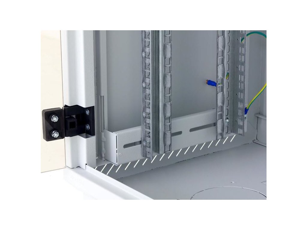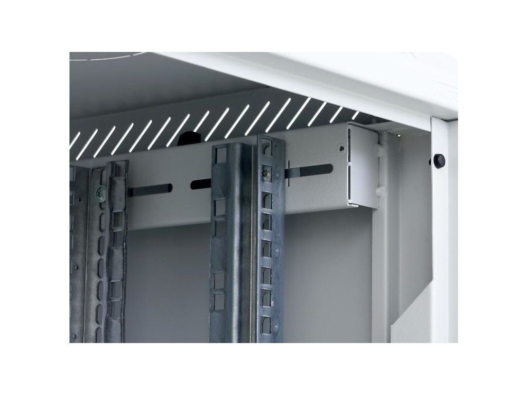 Dva páry 19" vertikálnych koľajníc sú plynule nastaviteľné v ľubovoľnej hĺbke stojana. To uľahčuje inštaláciu zariadenia a usporiadanie pripojovacích káblov.