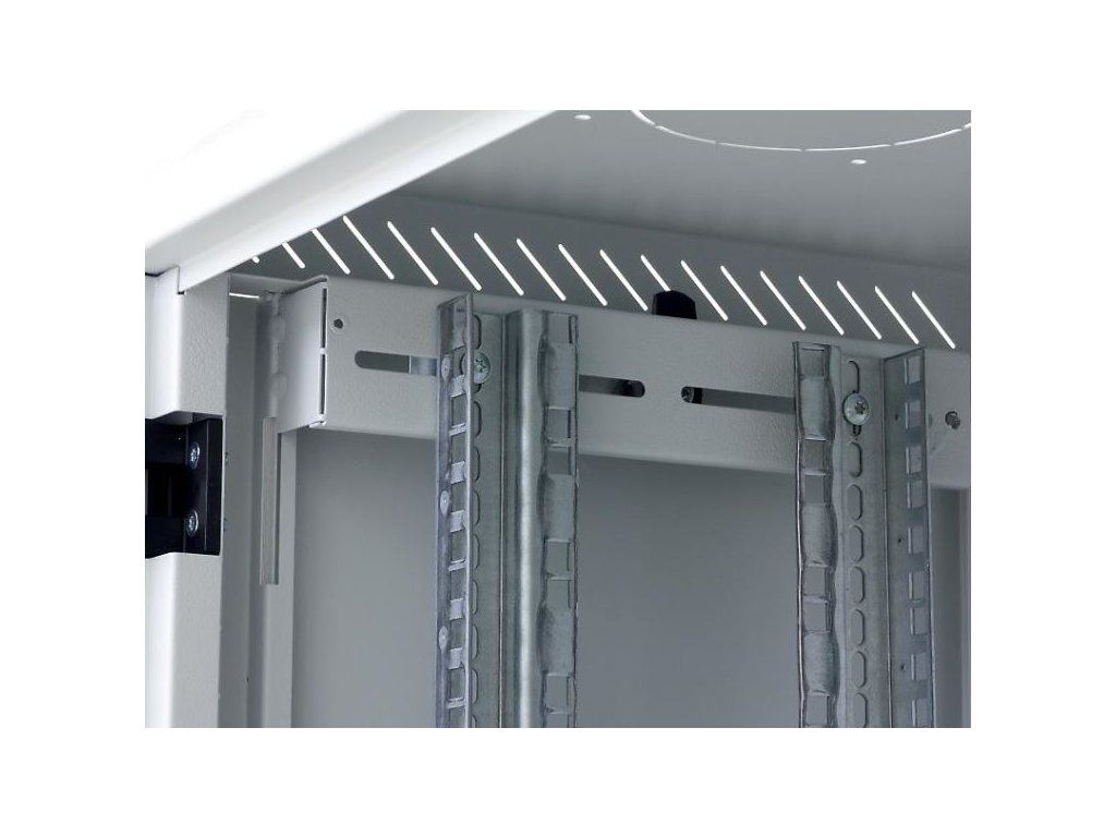 Dva páry 19" vertikálnych koľajníc sú plynule nastaviteľné v ľubovoľnej hĺbke stojana. To uľahčuje inštaláciu zariadenia a usporiadanie pripojovacích káblov.