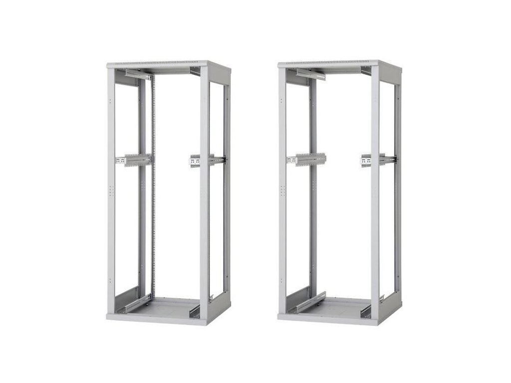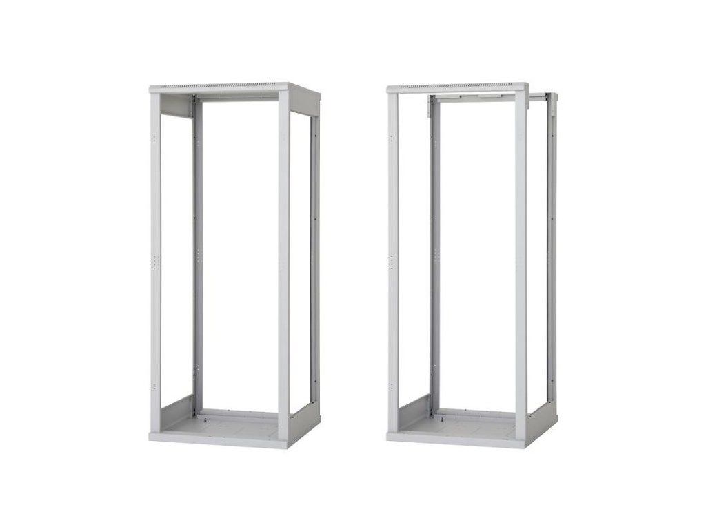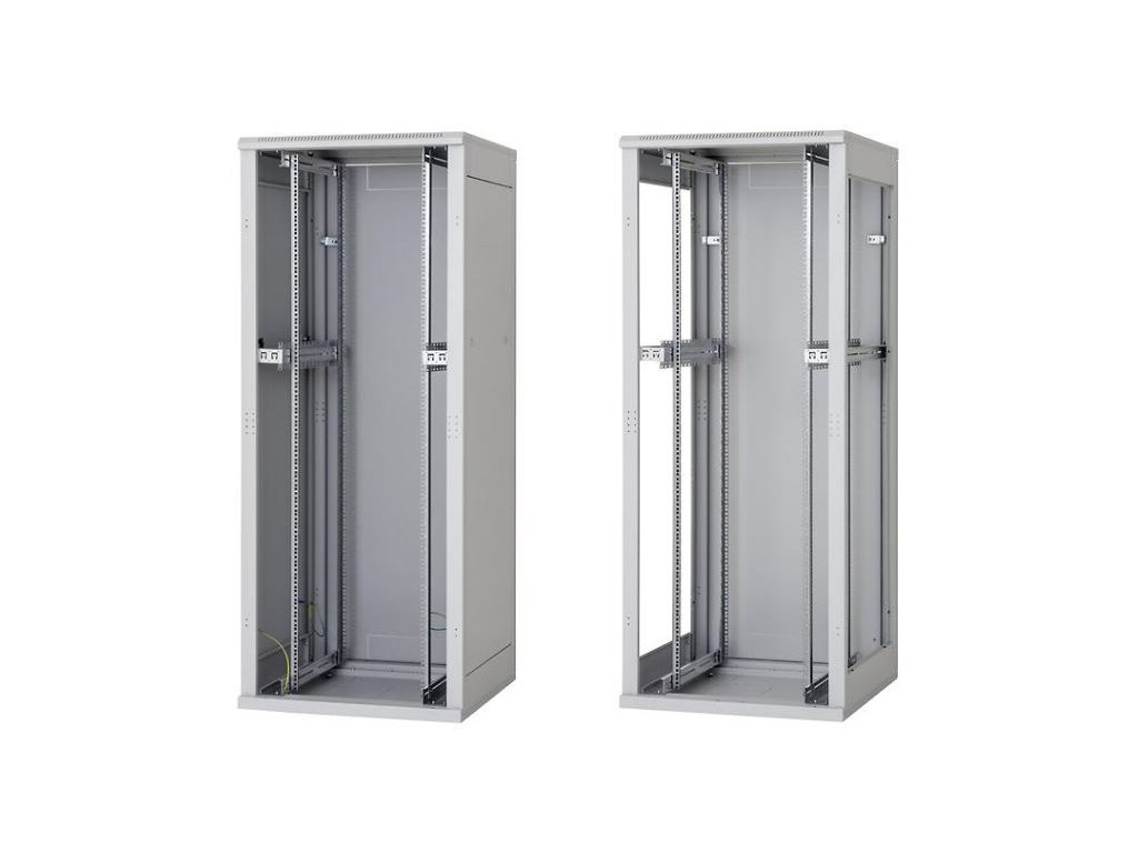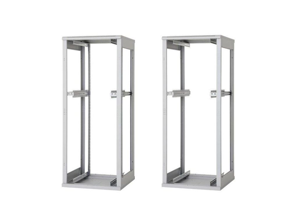 (platí pre šírku stojana 800 mm). Systém umožňuje inštaláciu posuvných vertikálnych koľajníc v rozpätiach 19", 21" a 23", presne podľa požiadaviek inštalovaného zariadenia.