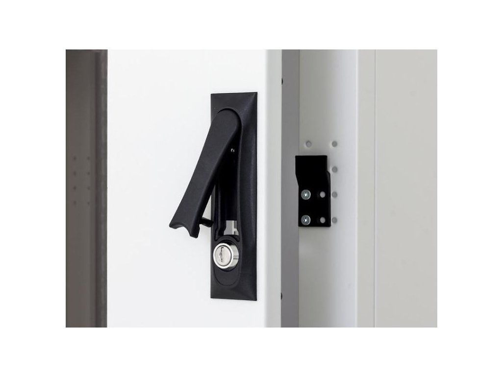 Vyrábame vlastné úchyty pre regálové skrine. Výmenou plastového modulu (nie je súčasťou dodávky) si môžete vybrať klasickú alebo poloválcovú vložku zámku. Patent: PUV 2013-27443.