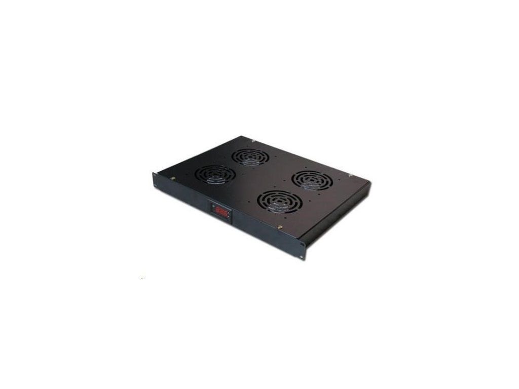19" ventilační jednotka XtendLan, 4 ventilátory, LCD display, termostat, hloubka 350mm, černá SFAN1U4T-B-EK
