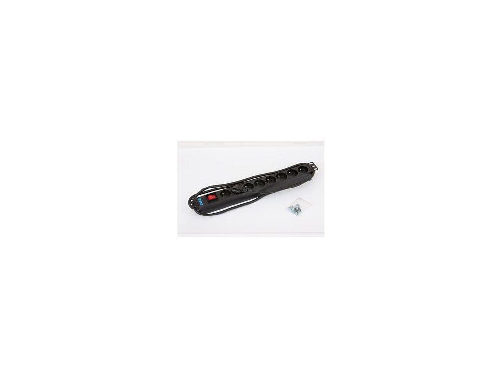 RAB-PD-X03-A1 19'' rozvodný panel 1U, 8x zásuvka podle ČSN, max 16A, kabel 3x1,5mm, 2m + zástrčka univezál CZ-DE max. 16A, podsvícený vypínač, RAL 9005, možnost otočení úchytů pouze o 180° PŘÍBAL Šroub M6 x 16 s podložkou............ 2x Plovoucí matice M6........................... 2xDodatočné parametre