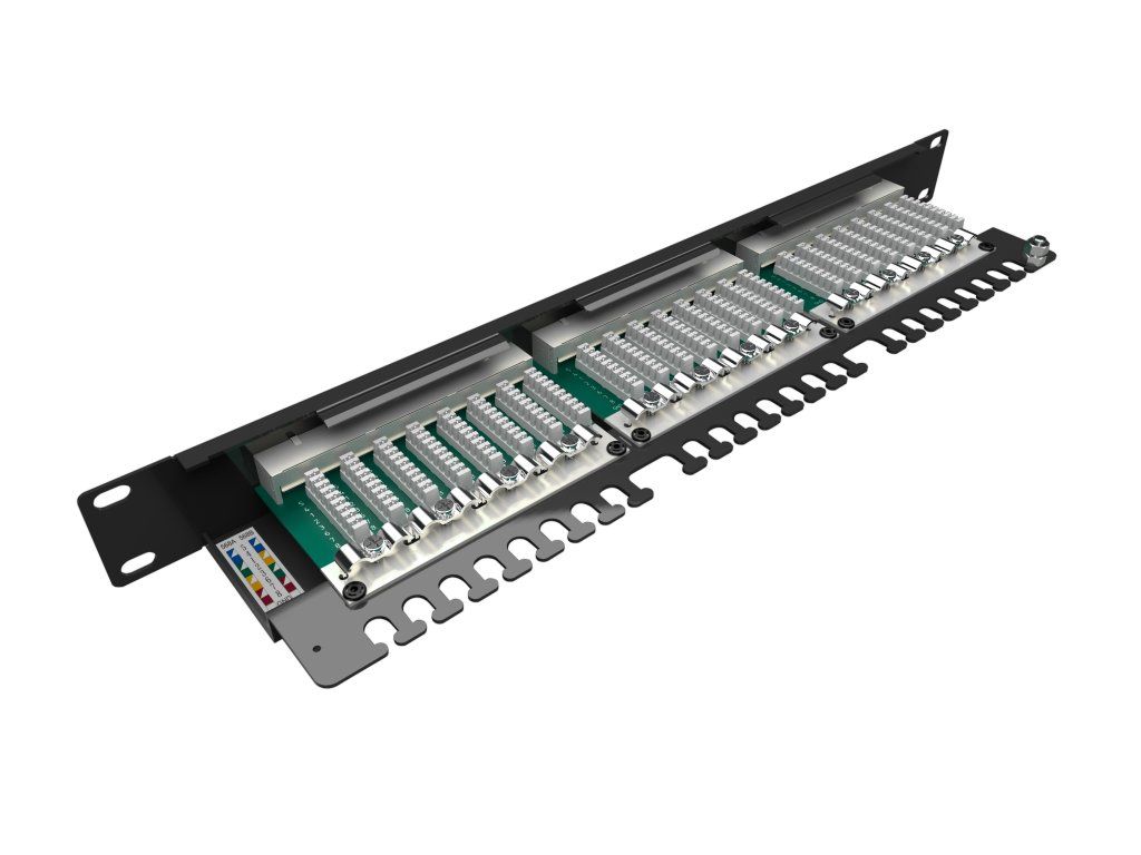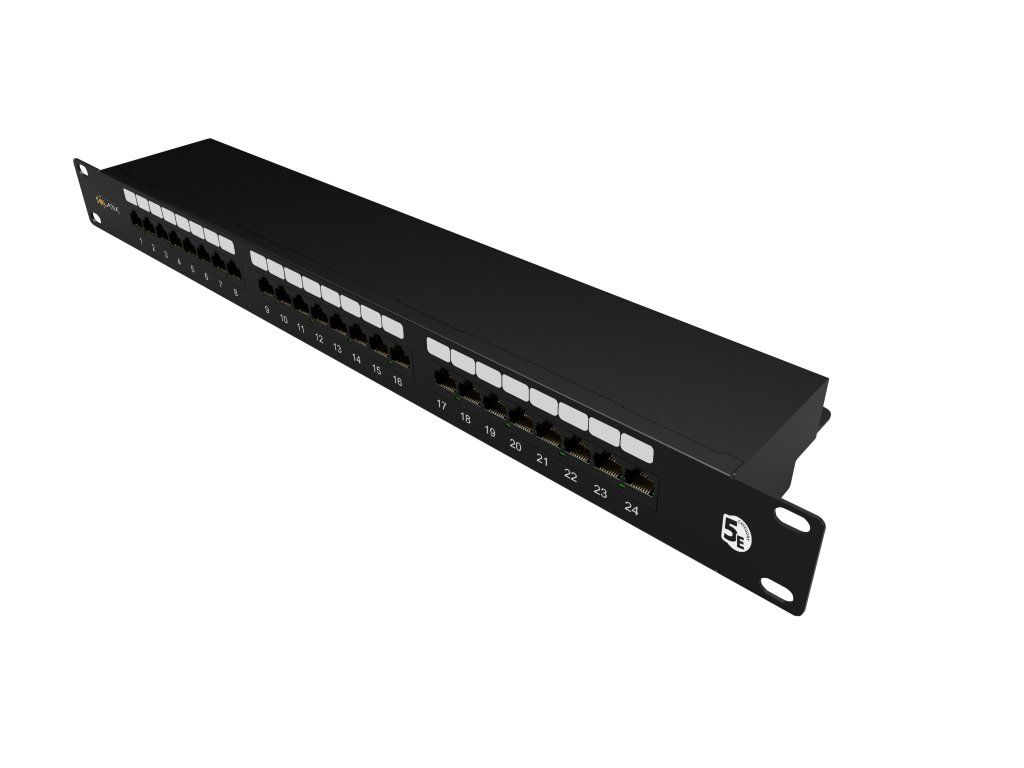 Stíněný patch panel Solarix – kategorie 5E s označením SX24-5E-STP-BK-N je dodáván v provedení s 24 porty RJ45. Panel je osazen moduly s duální IDC svorkovnicí 110/Krone. Svorkovnice je z důvodu snadného zakončení kabelu označena podle standardu T568A i T568B. Součástí těla panelu je vyvazovací lišta, která slouží k přehlednému uspořádání a pevnému uchycení datového kabelu. Stíněný patch panel Solarix SX24-5E-STP-BK-N splňuje požadavky na komponenty kategorie 5E a třídu vedení Class D, které jsou definovány ve standardech ANSI/TIA 568, ISO/IEC 11801 a EN 50173, a to včetně všech nejnovějších dodatků. Panel je pevný, spolehlivý a poskytuje dlouhou životnost. Standardní barva patch panelu je černá. Velikost v datovém rozvaděči je 1U. Součástí balení je 4x M6 montážní sada, a 24x vyvazovací pásek. Tento nový patch panel Solarix nahrazuje panel s označením SX24-5E-STP-BK. Technické parametry Kategorie: CAT5E Podporované protokoly: 2.5/5GBASE-T a nižší Počet portů: 24 Stínění: ano Vyvazovací lišta: ano Min. životnost portu: 1 000 zapojení/odpojení Krytí kontaktů: 50 µ zlata Svorkovnice: duální 110/Krone 8p8c Min. životnost svorkovnice: 200 zařezání Velikost a typ vodiče: AWG 26 - 22, drát Materiál nekovových částí: FR plast podle UL94-0 Barva: černá Velikost: 1U Výška: 44 mm Šířka: 484 mm Hloubka: 95 mm Skladovací teplota: -40 až 70 °C Provozní teplota: -10 až 60 °C Max. provozní vlhkost: 93 % Balení: 1 ks, kartónový obal Rozměry balení (výška x šířka x hloubka): 75 mm x 510 mm x 110 mm Přepravní balení: 10 ks, kartónový box Rozměry přepravního balení (výška x šířka x hloubka): 230 mm x 515 mm x 400 mm Montážní sada v balení: 4x M6Dodatočné parametre