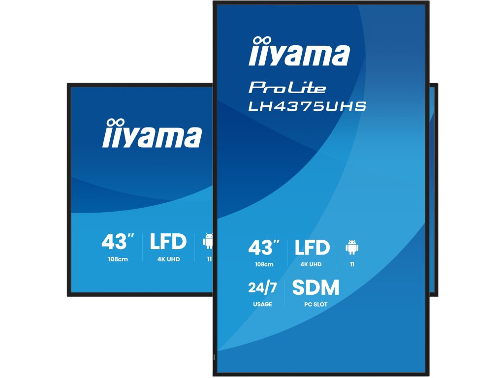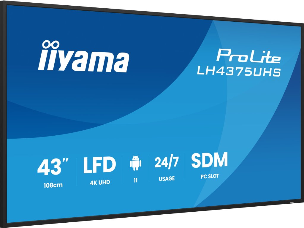 43'' 4K UHD Professional Digital Signage 24/7 display featuring Android OS, FailOver and Intel® SDM slot *24/7 Typ obrazovky: IPS Podsvícení: AG coated glass Úhlopříčka [palce]: 42,5'', 108 cm Rozlišení: 3840 x 2160 @60Hz (8,3 MegaPixels 4K UHD) Rozteč bodu [mm]: 0,245 Obnovovací frekvence [Hz]: 60 Poměr stran: 16:9 Povrch displeje: s matnou povrchovou úpravou, haze 25% Jas [cd/m2]: 500 Kontrast: 1200:1 Odezva [ms]: 8 (GTG) Pozorovací úhly (Horizontál/Vertikál): 178°/178° Počet barev: 1,07B (8bit+FRC) (NTSC 72%) Reproduktory: 2 x 10 W Konektory: Digitální vstupní porty: *HDMI x3 (2.0, max. 3840x2160 @60Hz, ARC on HDMI #3) *DisplayPort x1 (1.2, max. 3840x2160 @60Hz) Řídící vstup monitoru: * RS-232c x1 (2.5mm sub-mini jack) *RJ45 (LAN) x1 *IR x1 (3.5mm stereo mini) Digitální výstupní porty: *DisplayPort x1 (max. 3840x2160 @60Hz, MST-out Daisy Chain v.1.2) Audio výstup: *Mini jack x1 (3,5mm) Řídící výstup monitoru: *RS-232c x1 (2,5mm sub-mini jack) *IR smyčka x1 (3,5mm stereo mini) Ostatní: *HDCP 2.2 *USB ports x2 (2.0) *WiFi: ano (Built-in, 802.11ac) Napájení: AC 100–240V, 50/60Hz, interní Spotřeba [W]: 101 typicky Stand By režim [W]: 0,5 Třída energetické náročnosti: G Montáž na zeď: VESA 200 x 200 mm Ergonomie: Orientace horizontální, vertikální Barva: černá, matná Rozměry: 968 x 557 x 54 Hmotnost [kg]: 8,9 Obsah balení: napájecí kabel (1,8m), HDMI (1,8m), RS-232c (1,8m), uživatelský manuál, instrukce bezpečnosti, samolepky pro montážní otvory, drátěné přezky, dálkové ovládání (včetně baterie) Záruka: 36 měs.Dodatočné parametre