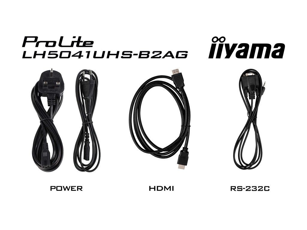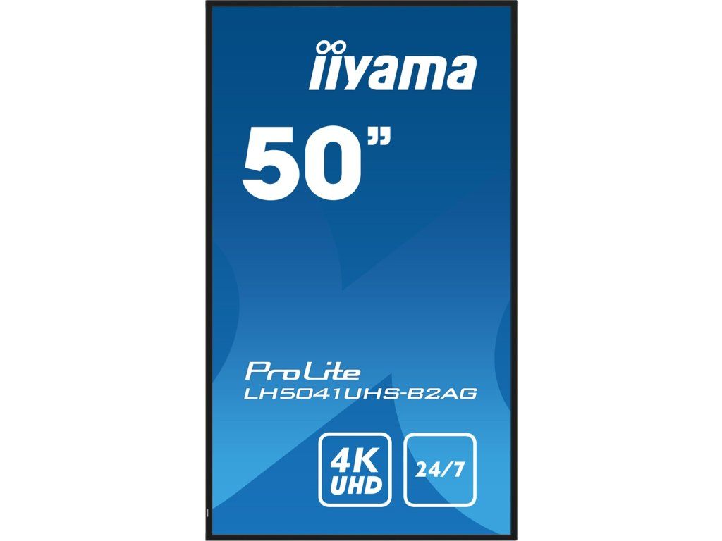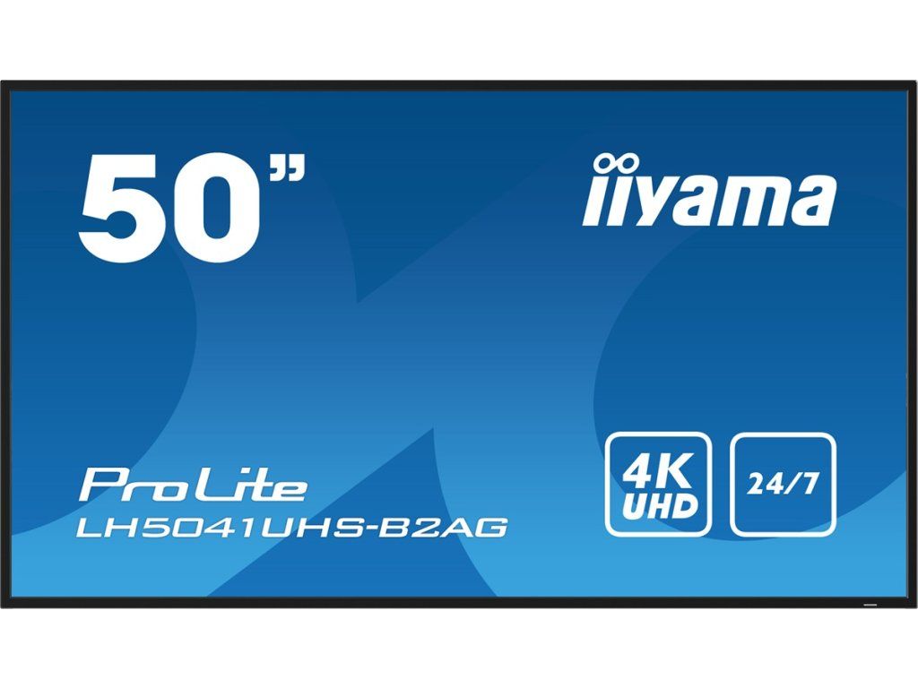 ProLite LH5041UHS-B2AG 50'' Professional Digital Signage display with 4K UHD resolution and 24/7 operating time Model iiyama LH5041UHS, zasazený do tenkého rámečku, je profesionální digital signage displej, který nabízí nepřetržitý provoz v orientaci na výšku i na šířku. * 4K * Media Player * LAN Control * VA * AG Coating Parametry Displeje Design: Thin bezel Úhlopříčka: 50'', 125.7cm Panel: VA, haze 25% Podsvícení: LED Nativiní rozlišení: 3840 x 2160 (8.3 megapixel 4K UHD) Poměr stran: 16:9 Jas: 500 Statický kontrast: 5000:1 Doba odezvy: 9,5ms Pozorovací úhly: 178°/178° Rozsah barev: 1.07B 10bit (8bit + Hi-FRC) (NTSC 72%) Rozteč bodů.: 0,285mm Barva: černá, lesklá Vlastnosti Max. provozní doba: 24/7 Konektory/Rozhraní/Ovládání *Analogové vstupní porty: VGA x1(max. 1920x1080 @60Hz) *Digitální vstupní porty: HDMI x3 (max. 3840x2160 @60Hz) *Řídíci vstup monitoru: RS-232c x1 (2.5mm mini jack), RJ45 (LAN) x1 *Audio Input: Mini jack x1 *Audio Out: RCA (L/R) x1, Reproduktory 2 x 10W *Řídící výstup monitoru: RS-232c x1, IR smyčka x1 *HDCP: v2.2 *USB Ports: x1 (2.0, FW update support) Mechanické Informace Montáž na zeď: 400 x 400mm Orientace: horizontální, vertikální Napájení Napájecí zdroj: interní, AC 100 - 250V, 50/60Hz Spotřeba [W]: 115 Obsah balení: *Kabely: napájecí, HDMI, RS-232c *Příručky: uživatelský manuál, instrukce bezpečnosti *Dálkové ovládání: Ano (včetně baterie) Rozměry Rozměry(ŠxVxH): 1122.5 x 643.5 x 55mm Hmotnost: 11,1kg Záruka: 3 rokyDodatočné parametre
