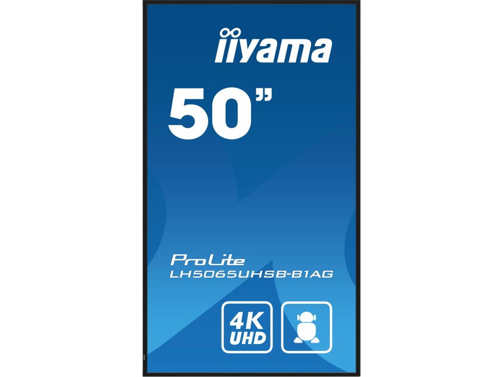 ProLite LH5065UHSB-B1AG 50'' Vivid-Bright Display with 4K resolution and 800cd/m2 panels for illuminating communication Vytvářejte dynamický, poutavý obsah, který zaujme a upoutá vaše publikum. * Android OS * iiSignage2 * Signal FailOver * Živé a jasné displeje * Flexibilní orientace Design: Thin bezel Typ obrazovky: VA, s matnou povrchovou úpravou, haze 25% Podsvícení: LED Úhlopříčka [palce]: 49.5'', 125.7cm Rozlišení: 3840 x 2160 @60Hz (8.3 MegaPixels 4K UHD) Rozteč bodu [mm]: 0,285 Obnovovací frekvence [Hz]: 60 Poměr stran: 16:9 Povrch displeje: Matný Jas [cd/m2]: 800 Kontrast: 5000:1 Odezva [ms]: 9,5ms Pozorovací úhly (Horizontál/Vertikál): 178/178 Počet barev: 1.07G (8 Bits+FRC) (NTSC 72%) Reproduktory: 2 x 10W Vlastnosti: Integrovaný software: Android 11 OS, iiSignage2, FailOver, EShare WiFi: ano (Built-in, 802.11ac) Hardware: CPU: A73*4+A53*4, GPU: G52 MP8, RAM: 4GB, ROM: 32GB Max. provozní doba: 24/7 Konektory: *Digitální vstupní porty: HDMI x2 (v.2.0, max. 3840x2160 @60Hz), DisplayPort x1 (v.1.2, max. 3840x2160 @60Hz) *Řídíci vstup monitoru: RS-232c x1 (2.5mm sub-mini jack), RJ45 (LAN) x1 *Audio Out: Mini jack x1 (3.5mm - stereo), Reproduktory 2 x 10W *HDCP: v.2.2 *USB Ports: 2x (v.2.0) Napájení: interní, AC 100 - 240V, 50/60Hz Spotřeba [W]: 65 Stand By režim [W]: 0,5 Třída energetické náročnosti: E Mechanické části Montáž na zeď: 400 x 400mm Orientace: horizontální, vertikální Barva: černá, matná Rozměry: 1127.6 x 643.5 x 55mm Hmotnost [kg]: 11,3 Obsah balení: *Kabely: napájecí, HDMI, RS-232c *Příručky: uživatelský manuál, instrukce bezpečnosti *Ostatní: Stickers for screw holes, wire buckles *Dálkové ovládání: Ano Záruka: 3 rokyDodatočné parametre