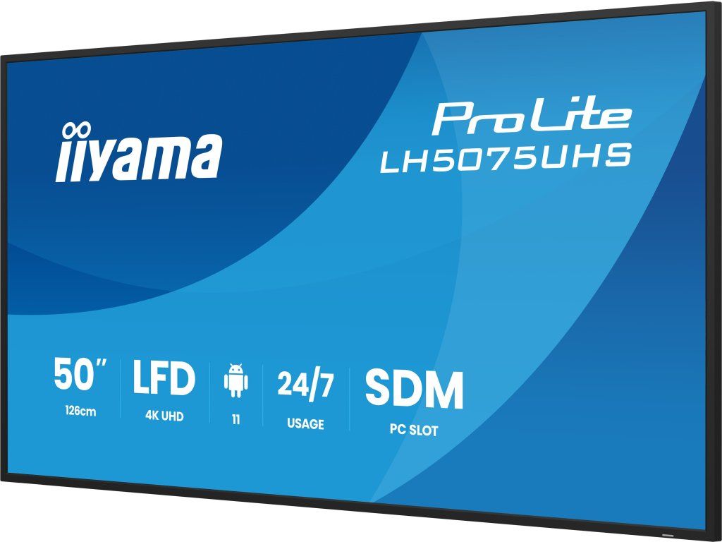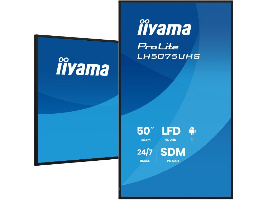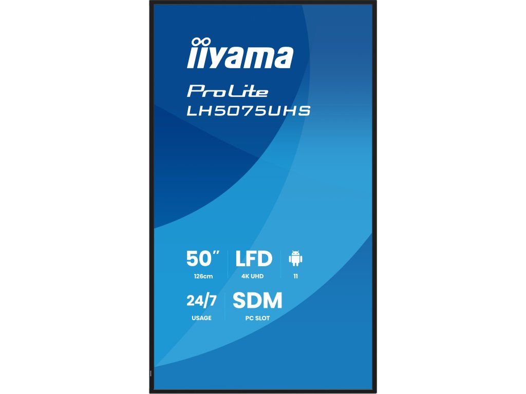 ProLite LH5075UHS-B2AG *Android OS *iiSignage *Signal FailOver *Smart Display Module Typ obrazovky:  ,VA Úhlopříčka [palce]: ,49,5 Rozlišení: ,3840 x 2160 Rozteč bodu [mm]: ,0.285 Obnovovací frekvence [Hz]: ,60 Poměr stran: ,16:9 Povrch displeje: ,Matný Jas [cd/m2]: ,500 Kontrast: ,5 000:1 Odezva [ms]: ,9,5 Pozorovací úhly (Horizontál/Vertikál): ,178/178 Počet barev: ,1,07 B. Reproduktory: ,2x 10W Integrovaný software: Android 11 Hardware SOC: A311D2, CPU: A73*4+A53*4, GPU: G52 MP8, RAM: 4GB, ROM: 32GB Bezdrátová komunikace: , *WiFi : (Built-in, 802.11ac) Konektory: , Vstupní: *3x HDMI 2.0 *1x DisplayPort 1.2 *1x RS-232 *1x RJ 45 *1x IR Výstupní *1x DisplayPort 1.2 Další: , *2x USB ports *1x Mini jack Napájení: ,Interní Spotřeba [W]: ,112 Stand By režim [W]: ,0,5 Třída energetické náročnosti: ,G Montáž na zeď: ,400 x 400 Orientace: horizontální, vertikální Barva: ,Černá Rozměry (se stojanem, ŠxVxH mm): ,1122.7 x 643.6 x 55 Hmotnost [kg]: ,11,8 Obsah balení: , *Napájecí kabel *HDMI kabel *RS-232c kabel Záruka: ,3 Roky Stránky výrobce: ,https://iiyama.com/cz_cs/produkty/prolite-lh5075uhs-b2ag/Dodatočné parametre