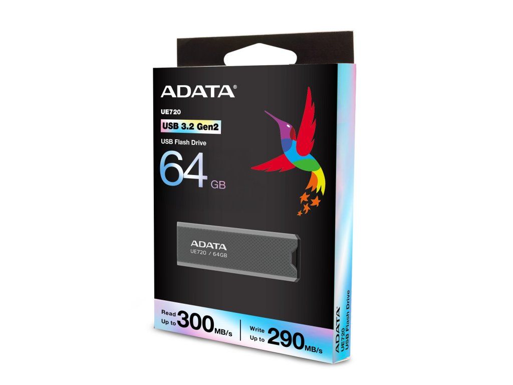 USB flash disk s výkonem na úrovni SSD je tady! UE720 disponuje rozhraním USB 3.2 Gen2 s rychlostí čtení/zápisu až 550 MB/s. Kompatibilní s celou řadou počítačových platforem - dokonalé překvapení pro uživatele na cestách. *Rozhraní USB 3.2. Gen2 (USB 10 GB/s) *Konektor USB-A *Rychlost čtení až 550 MB/s *Rychlost zápisu až 450 MB/s *Vysouvací konektor bez krytky *Otvor na klíčenku *Systém: Windows Vista, 7, 8, 8.1, 10 / 11, Mac OS X 10.6 or later,Linux kernel 2.6 or later, bez nutností driverů *Rozměry 67.3 x 23.5 x 10.2mm *Váha 13gDodatočné parametre