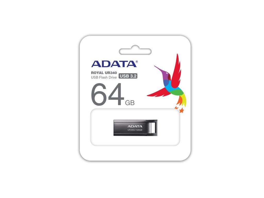 ADATA USB Flash UR340 Rozhraní: USB 3.2 Gen1 s rychlostí 5Gb/s Kapacita: 64 GB Rychlost čtení: 100 Mb/s Velikost: 34,8 x 12,25 x 4,6mm Barva: černá/kovDodatočné parametre