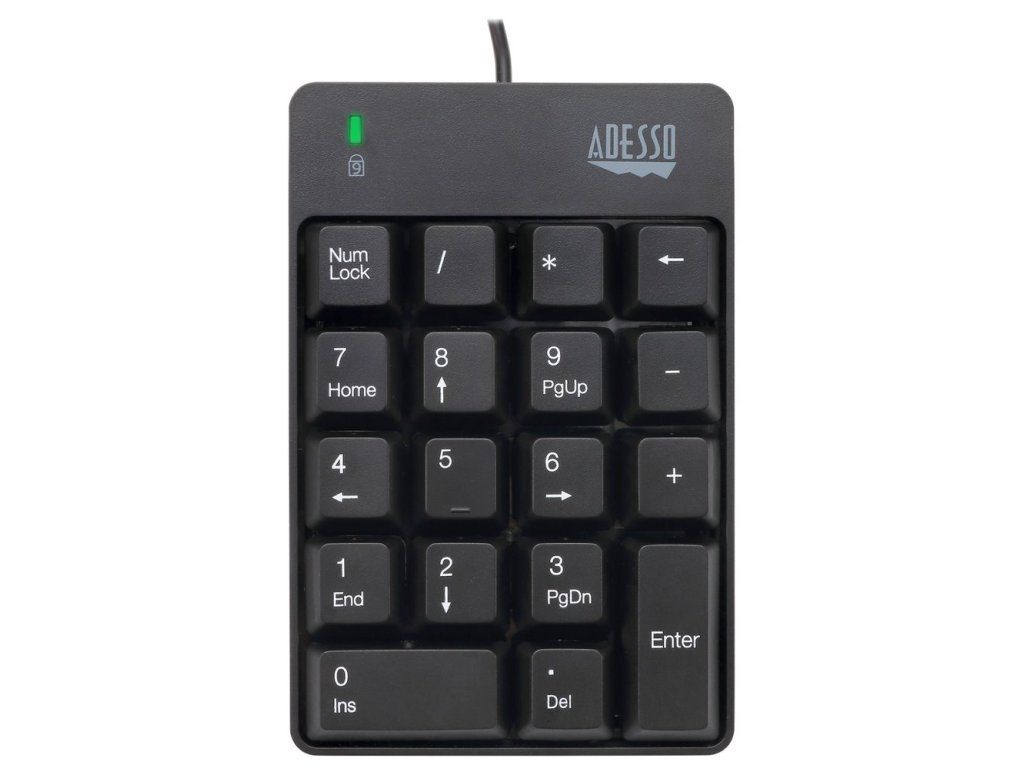 Adesso AKB-601UBExterní numerická klávesnice odolná proti polití tekutinou pro rychlé a pohodlné zadávání číselných údajů do PC či notebooku. Připojení k počítači je realizováno skrze 1,8 m dlouhý kabel zakončený USB konektorem.