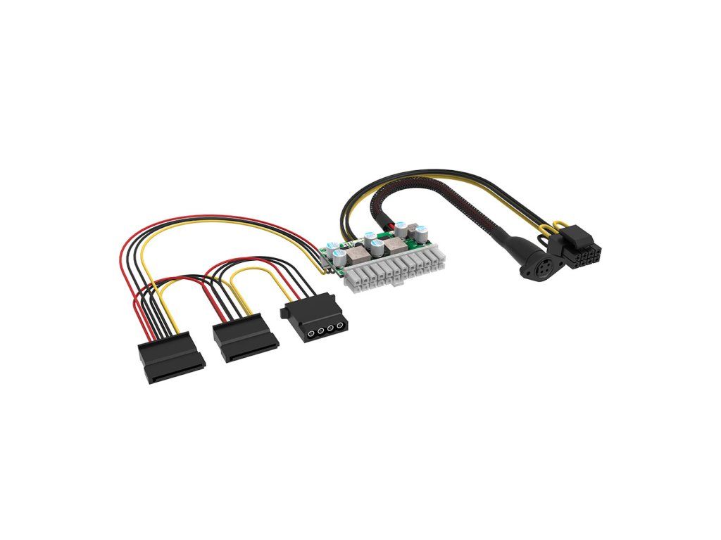 AKASA Compact Power 200 200W DC-DC ATX adaptér se 4pinovým DIN konektorem * Kompaktní design podporuje small form factor šasi * Přímé připojení do 24pinového konektoru ATX * Vysoce efektivní přenos energie * Ochrana proti přepětí Obecné informace: Aplikace: Napájecí zdroj DC na DC ATX pro malé šasi Vstupní napětí: DC 12V Rozměry: 56 x 39 x 12,5 mm Hmotnost produktu: 100 g Konektory: * ATX 24pin * Napájecí DIN 4pin (300 mm) * CPU 8pin (300 mm) * SATA + SATA + Molex 4pin (265+170+150 mm)Dodatočné parametre