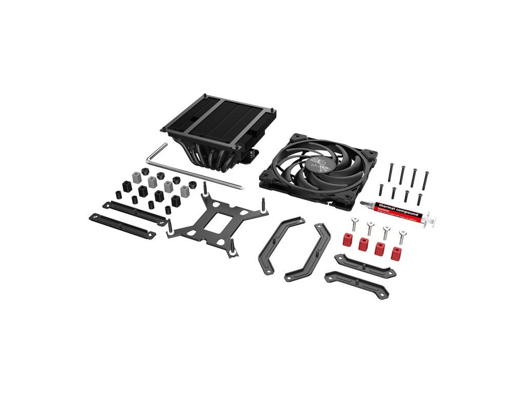 Akasa Alucia H6LS M2 nízkoprofilový chladič se 6 trubicemi * hydrodynamické ložisko * černý chladič a ventilátor Hadal Black Edition * výška 67,2 mm * ideální pro systémy SFF TDP: 150W Počet ventilátorů: 1 (120x120x16mm) Rychlost ventilátoru: 700-2000 ot./min Maximální průtok vzduchu: 41,59CFM Maximální tlak vzduchu: 1,41mm-H20 Hlučnost: 16–31,5dB(A) Jmenovité napětí ventilátoru: DC 12V Konektor ventilátoru: 4pinový PWM Materiál: černá hliníková žebra s měděnými trubicemi Rozměry chladiče: 120x120x67,2mm Hmotnost: 483,5g Kompatibilita: * Intel: LGA115x, LGA1200, LGA1700, LGA1851 * AMD: AM5, AM4 Záruka: 2 roky Odkaz na stránky výrobce: https://akasa.co.uk/search/AK-CC4036HP01Dodatočné parametre