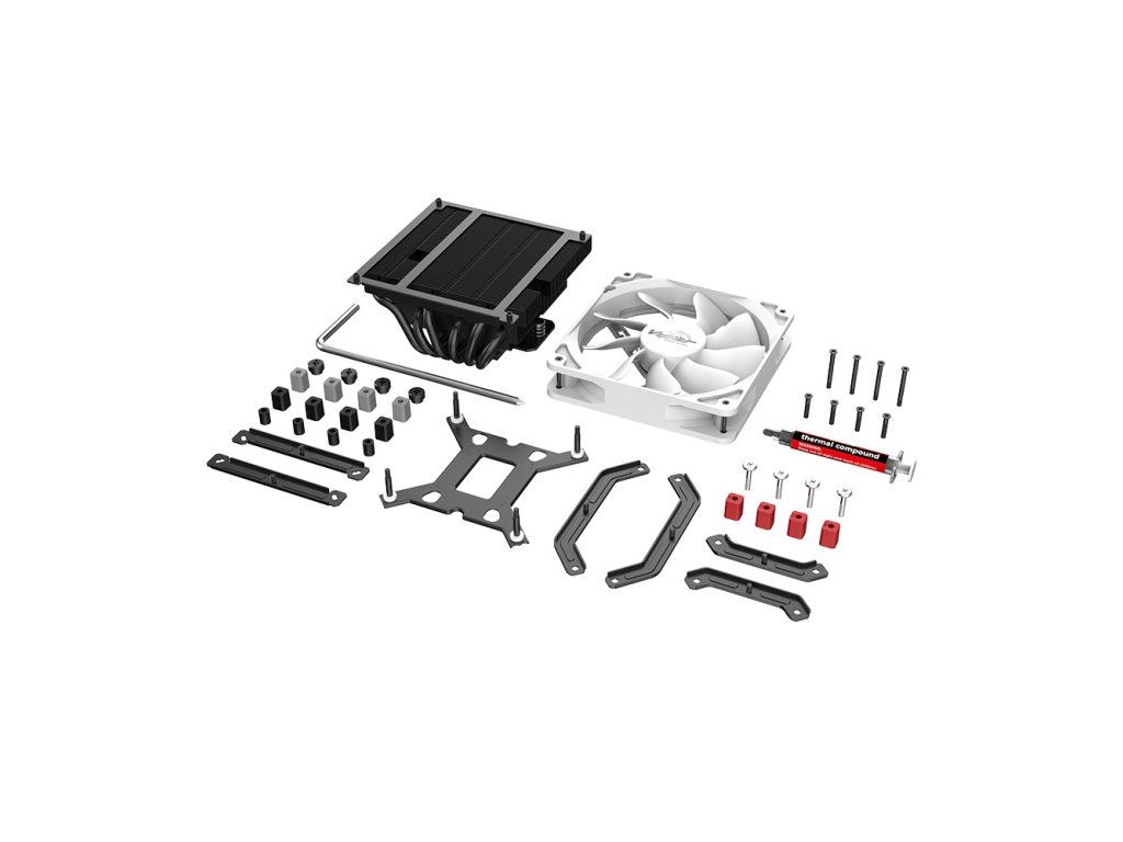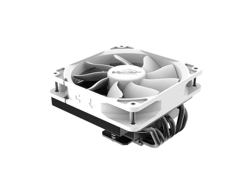 Akasa VIPER H6L M2 bílý nízkoprofilový chladič se 6 trubicemi *tichý 120mm PWM ventilátor s lopatkami S-FLOW *výška 76 mm *ideální pro systémy SFF TDP: 165W Počet ventilátorů: 1 (120x120x25mm) Rychlost ventilátoru: 600-1900 ot./min Maximální průtok vzduchu: 83,63CFM Maximální tlak vzduchu: 2,98mm-H20 Hlučnost: 6,9–28,9dB(A) Jmenovité napětí ventilátoru: DC 12V Konektor ventilátoru: 4pinový PWM Materiál: hliníková žebra s měděnými trubicemi Rozměry chladiče: 120x120x76mm Hmotnost: 550g Kompatibilita: *Intel: LGA115x, LGA1200, LGA1700, LGA1851 *AMD: AM5, AM4 Záruka: 2 roky Odkaz na stránky výrobce: https://akasa.co.uk/products/AK-CC4038HP01Dodatočné parametre