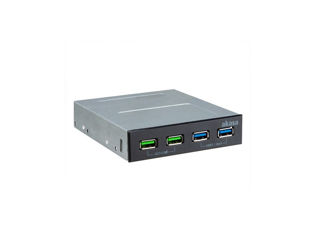 AKASA 4portový USB nabíjecí panel se dvěma porty Quick Charge 3.0 a dvěma porty USB 3.1 Gen 1. Duální porty rychlého nabíjení QC 3.0 - každý port poskytuje výkon až 18 W a využívá technologii Intelligent Negotiation for Optimum Voltage (INOV) pro efektivní a optimální přenos energie do připojených zařízení. Prostorově úsporný design. Rozšiřte možnosti připojení svého stolního počítače o porty USB a QC prostřednictvím 3,5palcové pozice. Snadné připojení k základní desce pro maximální funkčnost. Technické parametry *Umístění: 3.5'' PC bay *Rozhraní: USB 3.1 Gen 1 port x 2, QC3.0 port x 2 *Konektory: Internal motherboard USB 3.1 Gen 1 / USB 3.0 connector, Internal SATA power connector *Požadavek napájení: DC 12V *Rychlost přenosu: 5Gb/s (for USB 3.1 Gen 1 Ports only) *Výstupní napětí na QC 3.0 port: 3.6V-20V (18W)Dodatočné parametre