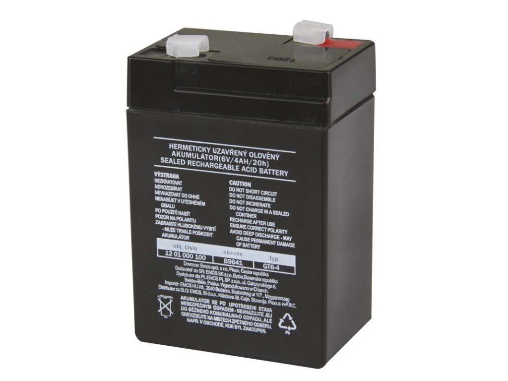 bezúdržbový ano chemické složení Pb napětí 6 V kapacita 4 Ah hmotnost 0,7 kg optimální životnost 5 let terminál faston 4,7 mm rozměr 70 × 47 × 101 mm prodejní obal 1 ks nabíjecí svítilny ano dětská vozítka - např. Peg-Pérego ano nouzové osvětlení ano energetická třída neuvádí se záruční doba 2 rokyDodatočné parametre