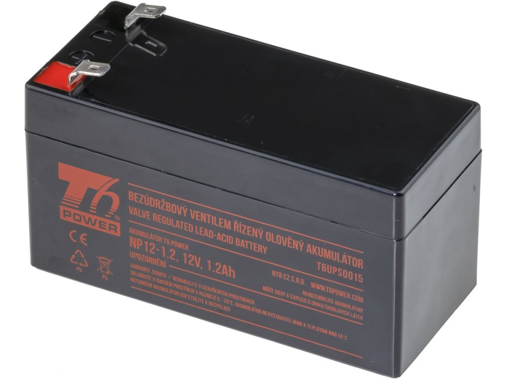Napětí: 12 V Kapacita: 1,2 Ah Typ pólu: Faston 4,7 mm (F1) Výška: 58 mm Šířka: 98 mm Hloubka: 43 mm Hmotnost: 0,54 kg Životnost: 3-5 let Bezúdržbový, ventilem řízený, olověný akumulátor české značky T6 Power NP12-1.2 je záložním zdrojem energie s kapacitou 1,2 Ah a napětím 12 V. Akumulátor je vhodným zdrojem pro zabezpečovací nebo protipožární systémy. Důležité: Uzavřené bezúdržbové akumulátorové baterie VRLA nelze nabíjet běžnou nabíječkou na autobaterie. Pro nabíjení použijte vhodnou nabíječku na bezúdržbové baterie.Dodatočné parametre