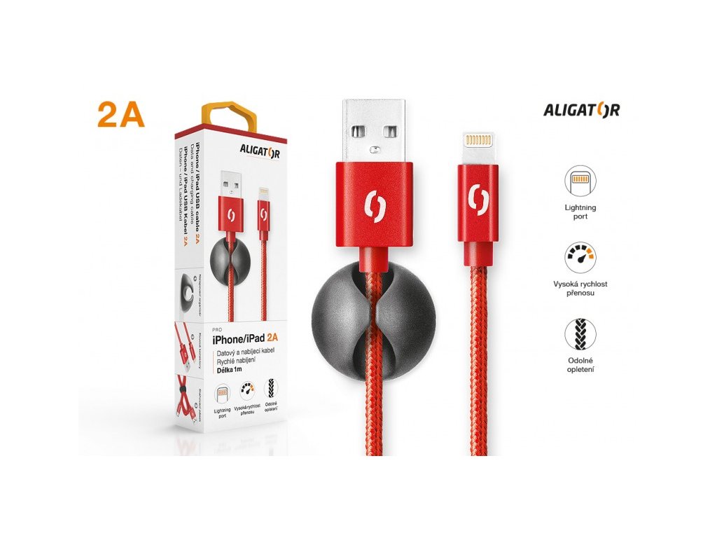 ''ALIGATOR PREMIUM není pouze název… ALIGATOR PREMIUM jsou produkty špičkové kvality s vlastnostmi, které reagují na poptávku trhu. Datový a nabíjecí pro iPhone/iPad s lightning konektorem: - Odolné nylonové opletení kabelu - Vysoce kvalitní kovové konektory - Vysoká rychlost přenosu dat - Možnost rychlého nabíjení: 2A - Stahovací pásek - Nalepovací organizér - Délka: 1m - Barva: černá, šedá, zlatá, červená, modrá ''Dodatočné parametre