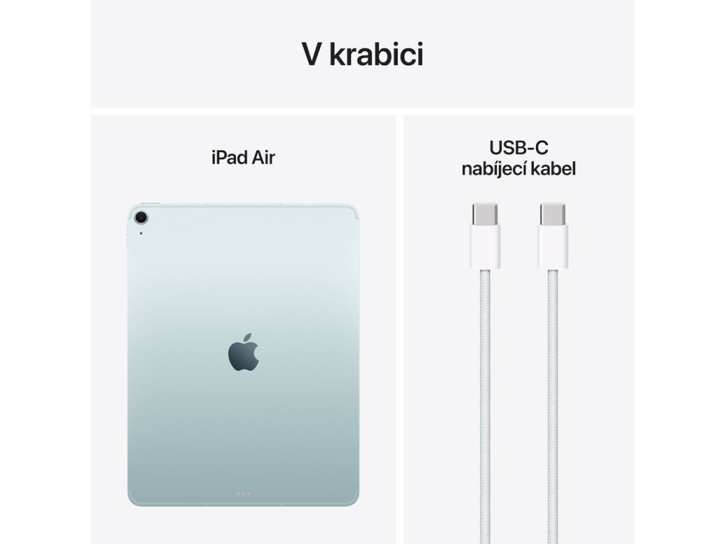 Apple iPad Air 13'' (M3) Wi-Fi + Cellular 256GB * Apple Intelligence Operační systém: iPadOS 18 Procesor: Apple M3, 8 jádrové CPU (4P+4E), 9 jádrové GPU, 16 jádrový Neural Engine Paměť: 8GB Pevný disk: 256GB Čtečka paměťových karet: ne Displej: 12,9'' Liquid Retina Multi-Touch displej s LED podsvícením a technologií IPS, 2732x2048 při 264ppi, 600 nitů, antireflexní, oleofobní úprava proti šmouhám, True Tone Audio: stereo reproduktory v orientaci na šířku, FaceTime audio, 2x mikrofon Fotoaparát zadní: * 12MP širokoúhlý, f/1,8, pětičlenný objektiv, až 5× digitální zoom, Smart HDR 4, sekvenční režim, HEIF a JPEG * 4K video při 24 fps, 25 fps, 30 fps nebo 60 fps, kontinuální autofokus při nahrávání videa, HEVC a H.264 Web kamera přední: * 12MP Center Stage na šířku, f/2,0, Smart HDR 4 * 1080p HD video při 25 fps, 30 fps nebo 60 fps, Retina Flash s True Tone, sekvenční režim, FaceTime Senzory: * Touch ID * tříosý gyroskop * akcelerometr * barometr * snímač okolního osvětlení Určování polohy: * digitální kompas * Wi-Fi * mikrolokalizace iBeacon * GPS/GNSS * mobilní data Bezdrátová komunikace: Wi-Fi 6E (802.11ax) s technologií 2×2 MIMO + Bluetooth 5.3 + 5G (pásma sub-6 GHz) s technologií MIMO 4×4 Porty: * 1x USB-C (až 10 Gb/s), nabíjení, DisplayPort * 1x magnetický konektor * 1x smart konektor Baterie: vestavěná lithium-polymerová baterie s kapacitou 36,59Wh Výdrž baterie: až 10 hodin/až 9 hodin v mobilní datové síti Barva: modrá Rozměry: 280,6x214,9x6,1mm Hmotnost: 617g V krabici: * iPad Air * USB-C nabíjecí kabel (1m)Dodatočné parametre