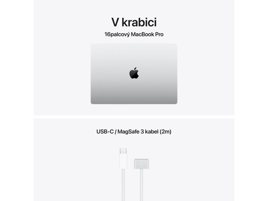 Apple MacBook Pro 16'' s čipem M5 Max *Apple Intelligence Operační systém: macOS Procesor: Apple M5 Max, 18jádrové CPU (6P+12E), 32jádrové GPU, 16jádrový Neural Engine, propustnost 460 GB/s Paměť: 36GB Pevný disk: 2TB SSD Optická mechanika: ne Čtečka paměťových karet: SDXC Displej: 16,2'' Liquid Retina XDR, 3456×2234 při 254 pixelech na palec, XDR až 1000 nitů, až 120Hz, True Tone Audio: Hi-fi zvuková soustava šesti reproduktorů s woofery v antirezonančním uspořádání, Dolby Atmos, soustava tří mikrofonů Webkamera: 12MP Center Stage, 1080p HD video, obrazový signálový procesor s výpočetním videem Polohovací zařízení: Force Touch trackpad Podsvícená klávesnice: ano, snímač okolního osvětlení Layout klávesnice: SK Numerická klávesnice: ne Čtečka otisků prstů: Touch ID Síť: ne Bezdrátová komunikace: Wi-Fi 7 (802.11be) + Bluetooth 6.0 Porty USB: *3× Thunderbolt 5 (nabíjení, DisplayPort, Thunderbolt 5: až 120 Gb/s, USB 4: až 120 Gb/s) Ostatní porty: *1× MagSafe 3 *1× 3,5mm sluchátkový konektor *1× HDMI *1× slot pro SDXC kartu Baterie: 100Wh lithium-polymerová Výdrž baterie: až 16 hodin bezdrátového prohlížení webu Napájení: napájecí adaptér se prodává zvlášť (minimální příkon potřebný k nabíjení zařízení je 140 W) Barva: stříbrná Rozměry: 355,7×248,1×16,8mm Hmotnost: 2,15kg V krabici: *16'' MacBook Pro *kabel USB-C/MagSafe 3 (2m) *slovenský ,návodDodatočné parametre