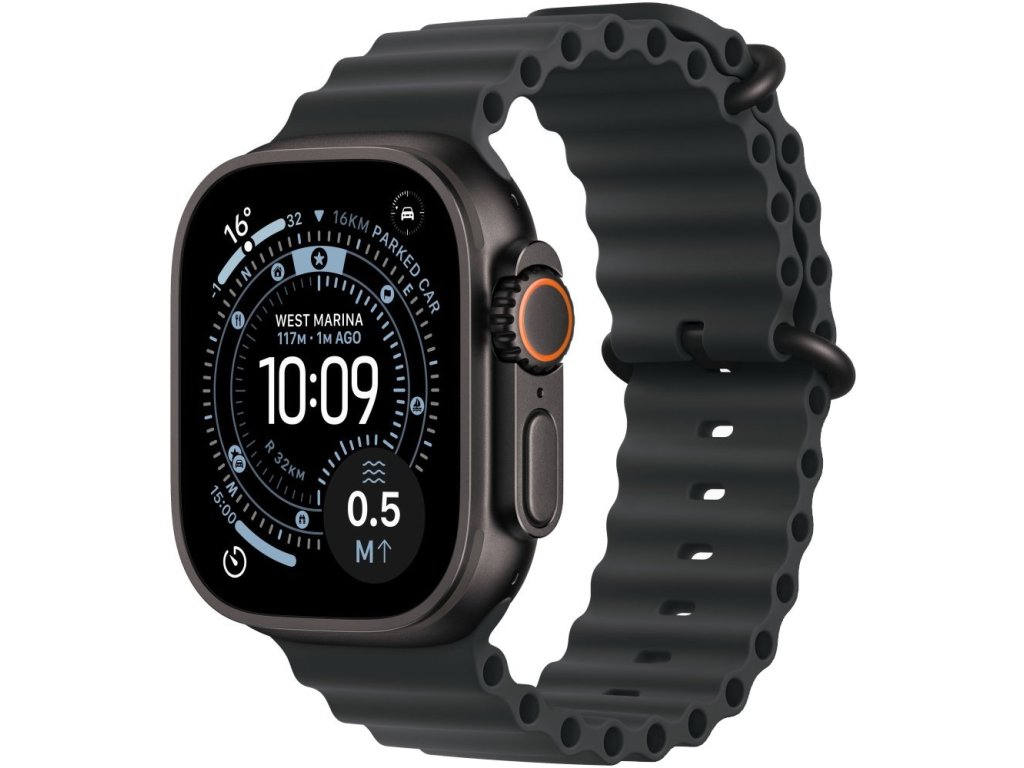 Apple Watch Ultra 3 představují vrchol technologie nositelné elektroniky s robustním 49mm pouzdrem z titanu třídy 5 v černém provedení. Hodinky jsou vybaveny stále zapnutým LTPO3 OLED Retina displejem s jasností až 3000 nitů a širokým pozorovacím úhlem pro perfektní čitelnost i v extrémních podmínkách.