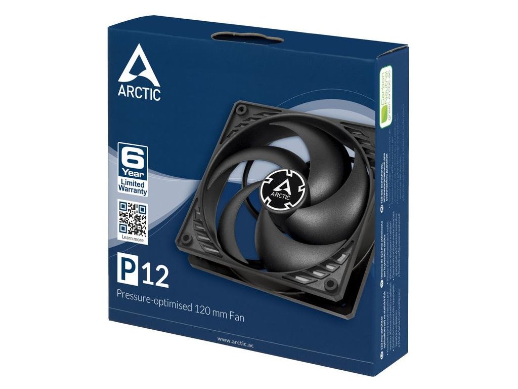 Kvalitný ventilátor, rozmery 120 x 25 mm, rýchlosť 1800 RPM (12V), prietok vzduchu 56,3 CFM, úroveň hluku 0,3 son, 3-pin konektor, kábel 400 mm.
