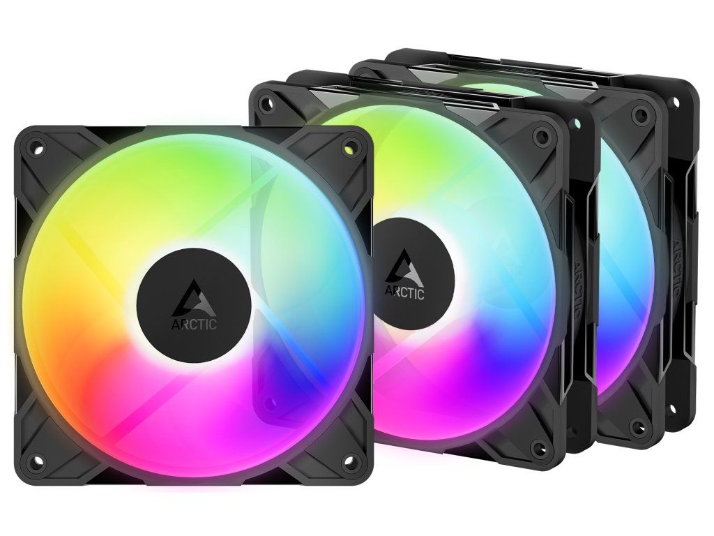 Balení obsahuje 3 kusy ventilátoru ARCTIC P12 Pro Reverse A-RGB.