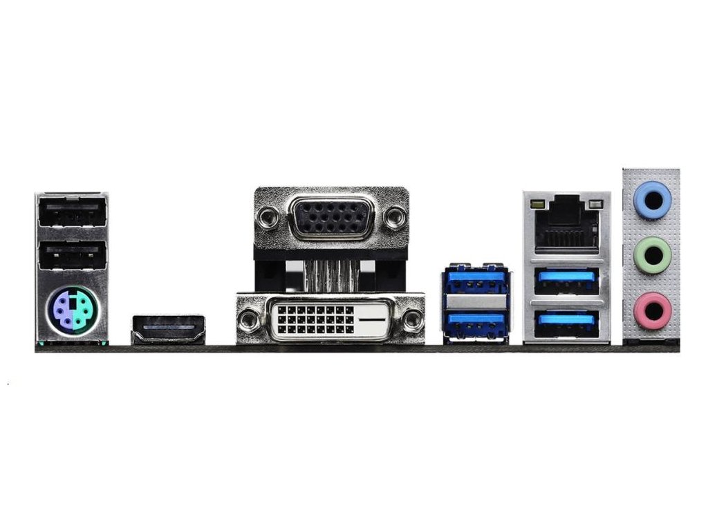 | Vstupy/výstupy na zadnom paneli | - 1 x port PS/2 pre myš/klávesnicu - 1 x port D-Sub - 1 x port DVI-D - 1 x port HDMI - 2 x USB 2.0 Porty (podporuje ochranu proti ESD) - 4 x USB 3.2 porty Gen1 (podporuje ochranu proti ESD) - 1 x port RJ-45 LAN s LED diódou (ACT/LINK LED a SPEED LED) - HD audio konektory: Line in / Predný reproduktor / Mikrofón |