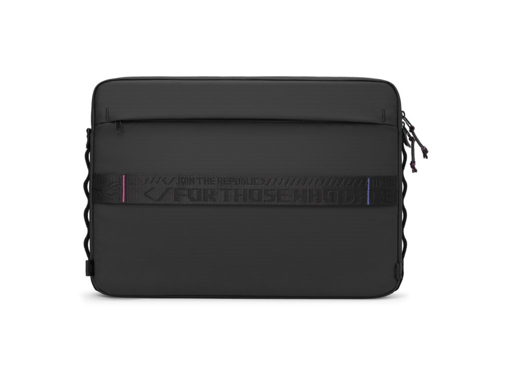 ROG Slash Sleeve 4.0 ti umožní bezpečně uložit 16'' notebook a veškeré příslušenství – je to dokonalý organizér pro každého technologického nadšence z řady ROG. Sleeve 4.0 pohodlně pojme 16'' notebook, napájecí adaptér i myš, a přitom si zachovává tenký profil. Odolné materiály proti roztržení a voděodolná úprava chrání tvé vybavení před poškozením. Rukojeť pro uchycení ke kufru, nastavitelný ramenní popruh a tříbodový fixační systém zajistí pohodlné nošení přesně podle tvých preferencí. Vnitřní kapsy a vnější oddíl poskytují spoustu možností, jak uložit vybavení přehledně a stylově. Matně černý design se hodí ke každému outfitu a působí elegantně v každé situaci. Uvnitř najdeš vlastní monogramy ROG a vnější látka je zdobena ROG kódem – podpis značky tak nikdy nechybí.Dodatočné parametre