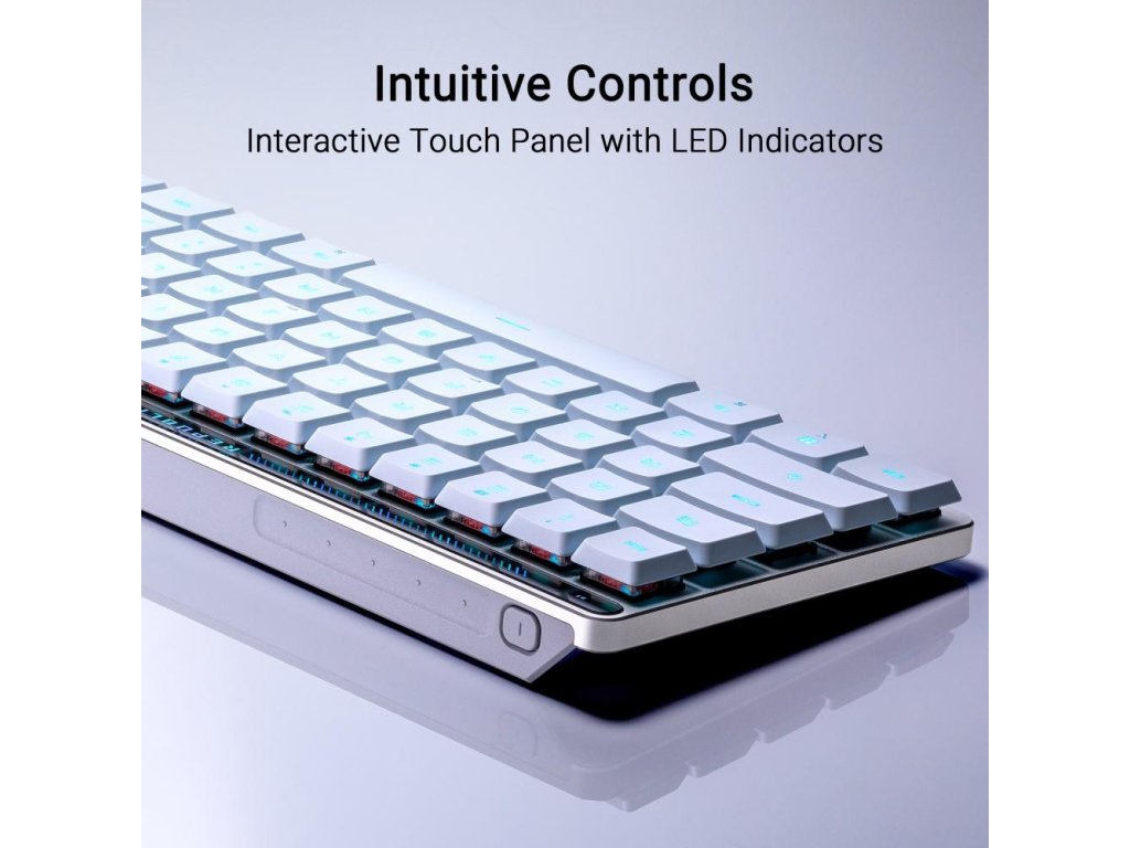 - Kompaktný a tenký dizajn: 65% klávesnica v 60% rámu s profilom 26,5 mm dôvtedne zahrňuje šípky a navigačné klávesy