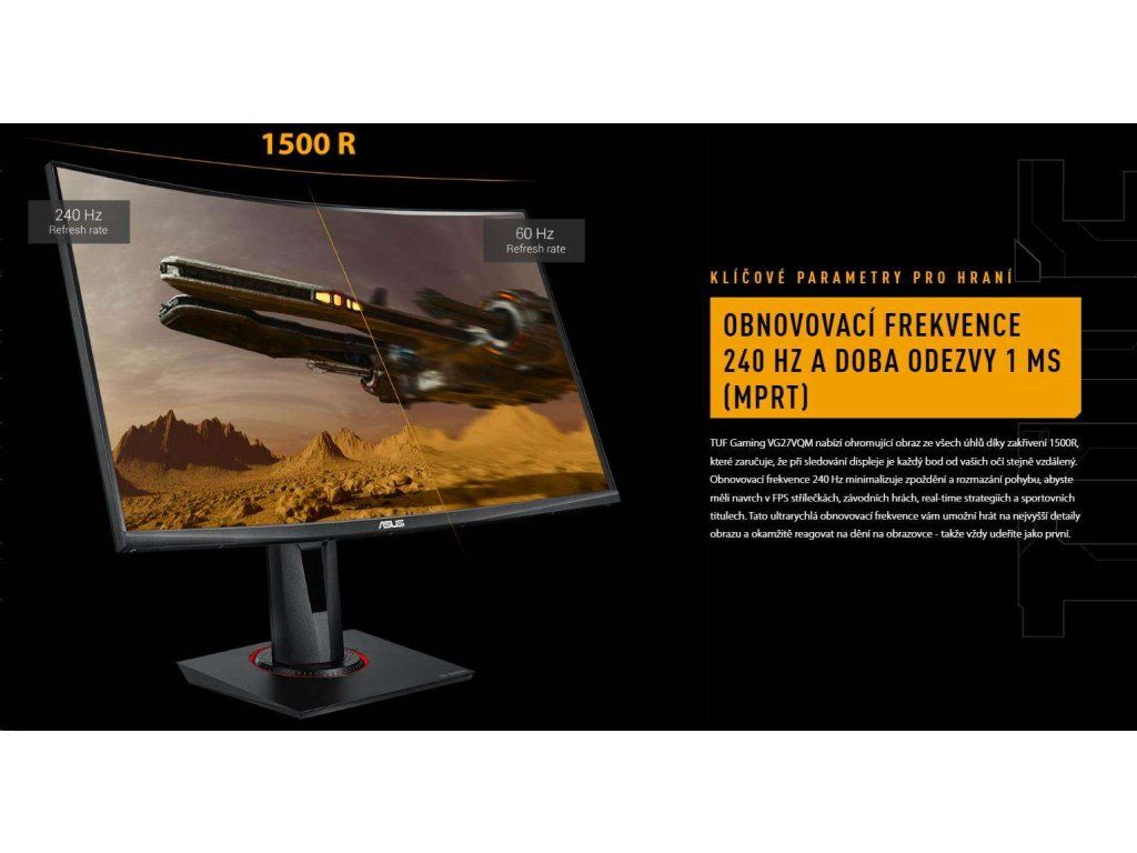 ASUS LCD 27" VG27VQM TUF Gaming 1920x1080 VA 350cd 1ms MPRT 240Hz repro HDMI DP vesa 90LM0510-B03E70