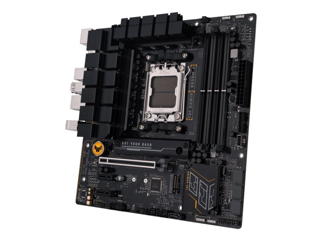 ASUS TUF GAMING B650M-E kombinuje všetky základné prvky najnovších procesorov AMD Ryzen 7000-series s hernými funkciami a overenou odolnosťou. Navrhnutá s vojenským hardvérom, vylepšeným napájacím riešením a komplexným chladicím systémom, táto základná doska prekračuje očakávania s pevnou a stabilnou výkonom pre maratónové hranie hier. TUF GAMING základné dosky prechádzajú náročnými testami odolnosti, aby sa zabezpečilo, že zvládnu aj podmienky, v ktorých môžu iní zlyhať. Esteticky tento model obsahuje odolné čierne a geometrické prvky, ktoré odrážajú spoľahlivosť a stabilitu, ktoré definujú sériu TUF GAMING.