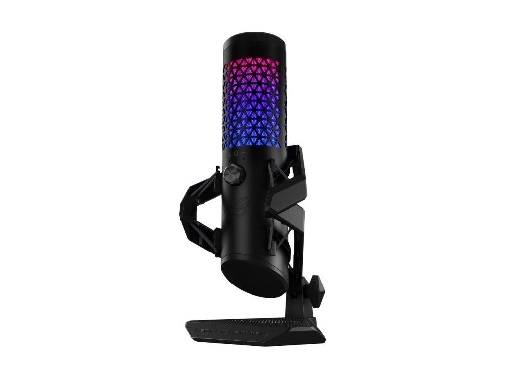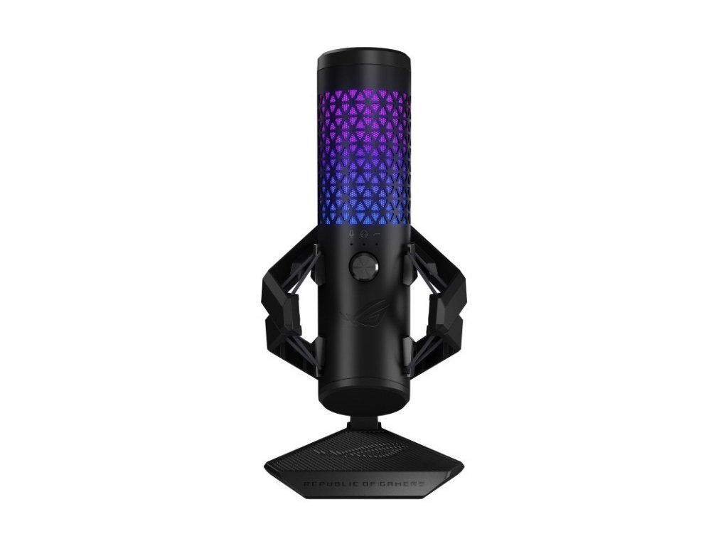 Profesionálny kardioidný kondenzátorový herný mikrofón je vybavený 25mm kondenzátorovou kapslí štúdiovej kvality, vzorkovacou frekvenciou 192 kHz / 24 bity, vysokopriepustným filtrom, zabudovaným pop filtrom, prémiovým kovovým držiakom na nárazy a osvetlením ASUS Aura Sync RGB.