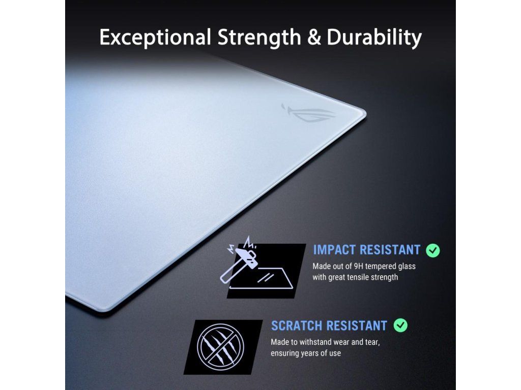 ROG Moonstone Ace L je prémiová podložka pod myš vyrobená z tvrdeného skla odolného proti nárazu a poškrabaniu pre výnimočnú odolnosť. Jeho špeciálne upravený povrch poskytuje bezkonkurenčnú úroveň presnosti, ako aj ľahké prechádzanie a sledovanie. Vďaka tak rýchlym a čistým pohybom vaši protivníci nebudú vedieť, čo ich zasiahlo.