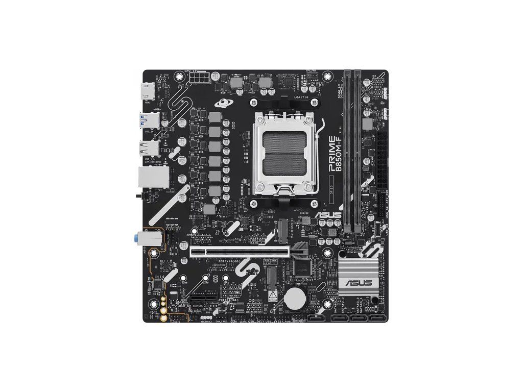 ASUS PRIME B850M-F CPU: AMD socket AM5 pro desktopové procesory Chipset: Čipset AMD B850 Paměť: 2 × DIMM slot, max. 128 GB, DDR5 Grafika (integrované výstupy): 1 × HDMI port Rozšiřující sloty Procesory AMD Ryzen™ řad 9000 a 7000 1 × PCIe 5.0 x16 (režim x16) Procesory AMD Ryzen™ řady 8000 1 × PCIe 4.0 x16 (režim x8/x4) Čipset AMD B850 1 × PCIe 4.0 x1 Úložiště: Celkem podpora 2 × M.2 sloty a 4 × SATA 6 Gb/s porty Síť: 1 × Realtek 1Gb Ethernet USB: Zadní panel (6 portů): 2 × USB 5 Gb/s (Type-A) 4 × USB 2.0 (Type-A) Přední panel (7 portů): 1 × USB 5 Gb/s konektor (USB-C) 1 × USB 5 Gb/s header (2 porty) 2 × USB 2.0 headery (4 porty) Audio: Realtek 7.1 kanálový HD audio kodek Zadní I/O porty: 2 × USB 5 Gb/s 4 × USB 2.0 1 × HDMI™ 1 × Realtek 1Gb LAN 3 × audio konektory 1 × tlačítko BIOS FlashBack Interní I/O konektory: Chlazení: 1 × 4pin CPU ventilátor 2 × 4pin ventilátor skříně Napájení: 1 × 24pin hlavní napájení 1 × 8pin CPU napájení Úložiště: 2 × M.2 (Key M) 4 × SATA 6 Gb/s USB: 1 × USB 5 Gb/s (USB-C) 1 × USB 5 Gb/s header 2 × USB 2.0 headery Ostatní: 3 × ARGB Gen 2 1 × Clear CMOS 1 × COM 1 × Audio předního panelu 1 × S/PDIF Out 1 × SPI TPM 1 × systémový panel BIOS: 256 Mb Flash ROM, UEFI AMI BIOS Formát: micro-ATXDodatočné parametre