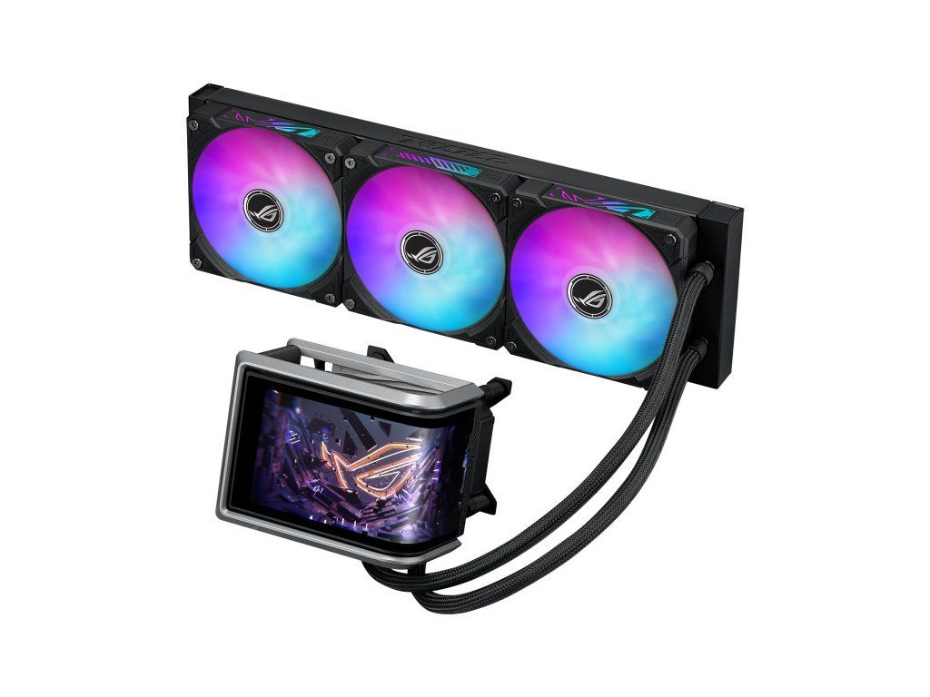 ASUS ROG RYUO IV 360 ARGB Vodní blok: Rozměry vodního bloku: 133 × 105 × 137 mm Materiál bloku (CPU deska): měď Radiator: Rozměry radiátoru:399,5 × 120 × 30 mm Materiál radiátoru: hliník Hadice: opletená gumová hadice Délka hadic: 400 mm Ventilátor: ROG RYUO IV MF-12C ARGB Velikost: 3× pozice pro ventilátor (120 mm) Rozměry:120 × 120 × 25 mm Otáčky: 500–2000 ± 10 % RPM Statický tlak: 3,56 mmH2O Průtok vzduchu: 56,66 CFM Hlučnost: 30,7 dB(A) Režim řízení: PWM / DC Speciální vlastnosti: 6.67'' AMOLED AURA Sync Support Kompatibilita: AMD: AM5,AM4 Intel: LGA 1851, 1700, 1200, 115x Odkaz na oficiální web: https://rog.asus.com/cooling/cpu-liquid-coolers/rog-ryuo/rog-ryuo-iv-360-argb/Dodatočné parametre