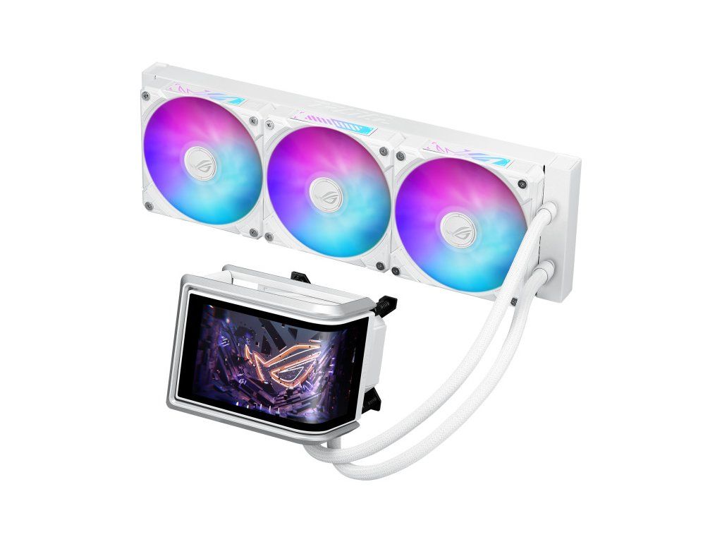 ASUS ROG RYUO IV 360 ARGB - Bílá Vodní blok: Rozměry vodního bloku: 133 × 105 × 137 mm Materiál bloku (CPU deska): měď Radiator: Rozměry radiátoru:399,5 × 120 × 30 mm Materiál radiátoru: hliník Hadice: opletená gumová hadice Délka hadic: 400 mm Ventilátor: ROG RYUO IV MF-12C ARGB Velikost: 3× pozice pro ventilátor (120 mm) Rozměry:120 × 120 × 25 mm Otáčky: 500–2000 ± 10 % RPM Statický tlak: 3,56 mmH2O Průtok vzduchu: 56,66 CFM Hlučnost: 30,7 dB(A) Režim řízení: PWM / DC Speciální vlastnosti: 6.67'' AMOLED AURA Sync Support Kompatibilita: AMD: AM5,AM4 Intel: LGA 1851, 1700, 1200, 115x Odkaz na oficiální web: https://rog.asus.com/cooling/cpu-liquid-coolers/rog-ryuo/rog-ryuo-iv-360-argb-white-edition/Dodatočné parametre