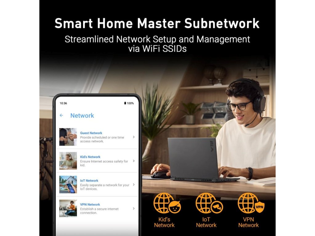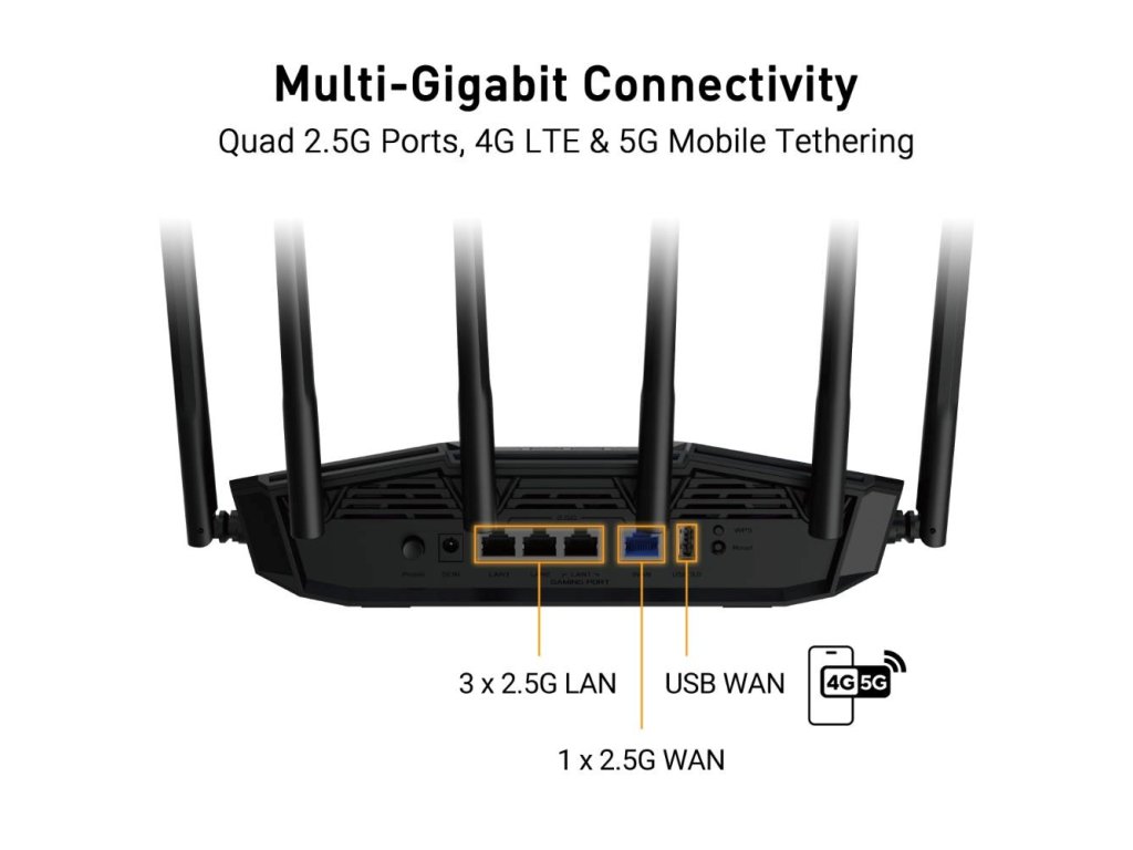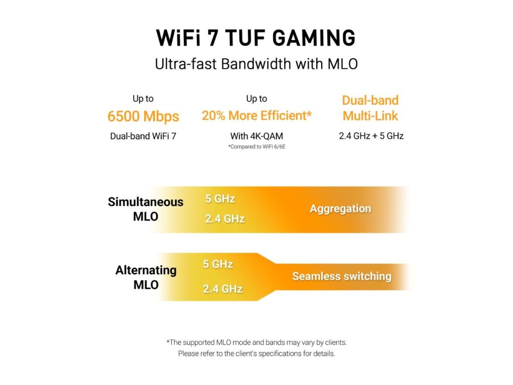 ASUS TUF-BE6500 (BE6500) WiFi 7 Extendable Gaming Router, 4x 2.5G, AiMesh 90IG0920-MO9C00