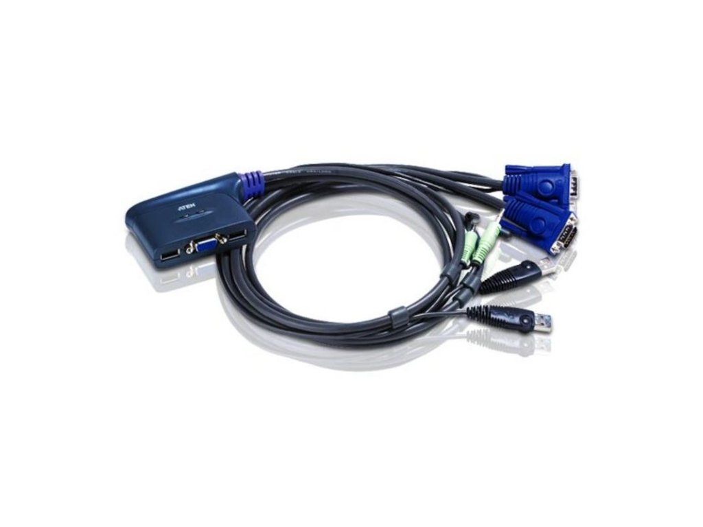 2 portový KVM prepínač s integrovynými 1.8m káblami. Umožňuje ovládanie 2 PC s VGA D-sub výstupmi z jednej konzoly. Jedna USB konzola ovláda 2 USB počítače. Kompaktný dizajn s integrovanými 1.8m káblami. Prepínanie pomocou klávesových skratiek. Rozlíšenia až do 2048 x 1536, DDC2B. Funkcia auto-scan. Bez zvuku.