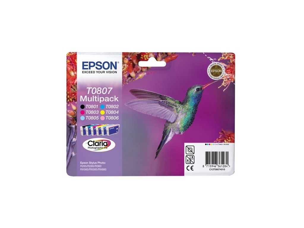 Atrament EPSON čierny + pruh CLARIA Stylus photo "Hummingbird" R265/ RX560/ R360 - multipack C13T08074011