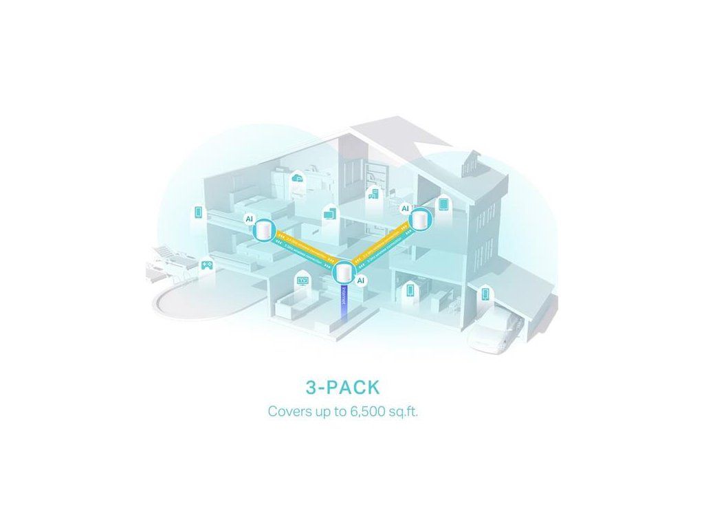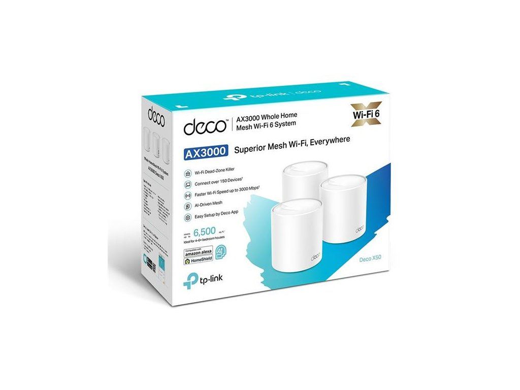 AX3000 Whole Home Mesh Wi-Fi 6 System SPEED: 574 Mbps at 2.4 GHz + 2402 Mbps at 5 GHz SPEC: 2× Internal Antennas, 3× Gig Deco X50(3-pack)
