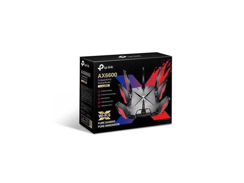 AX6600 Tri-Band Wi-Fi 6 Gaming Router SPEED: 574 Mbps at 2.4 GHz + 1201 Mbps at 5 GHz_1 + 4804 Mbps at 5 GHz_2 SPEC: 8× Archer GX90