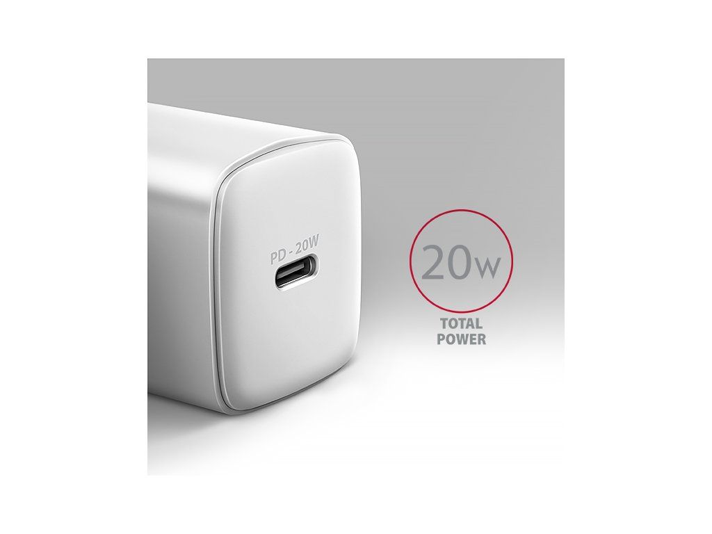 AXAGON ACU-PD20W, nabíjačka do siete 20W, 1x port USB-C, PD3.0/PPS/QC4+/AFC/Apple, biela ACU-PD20W