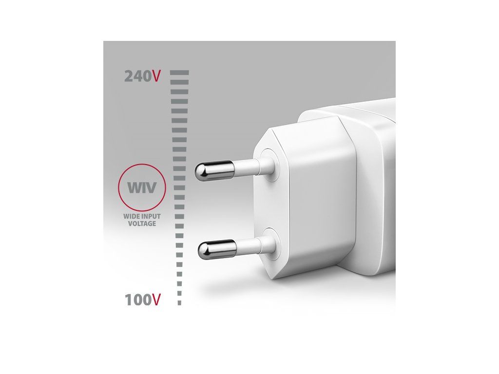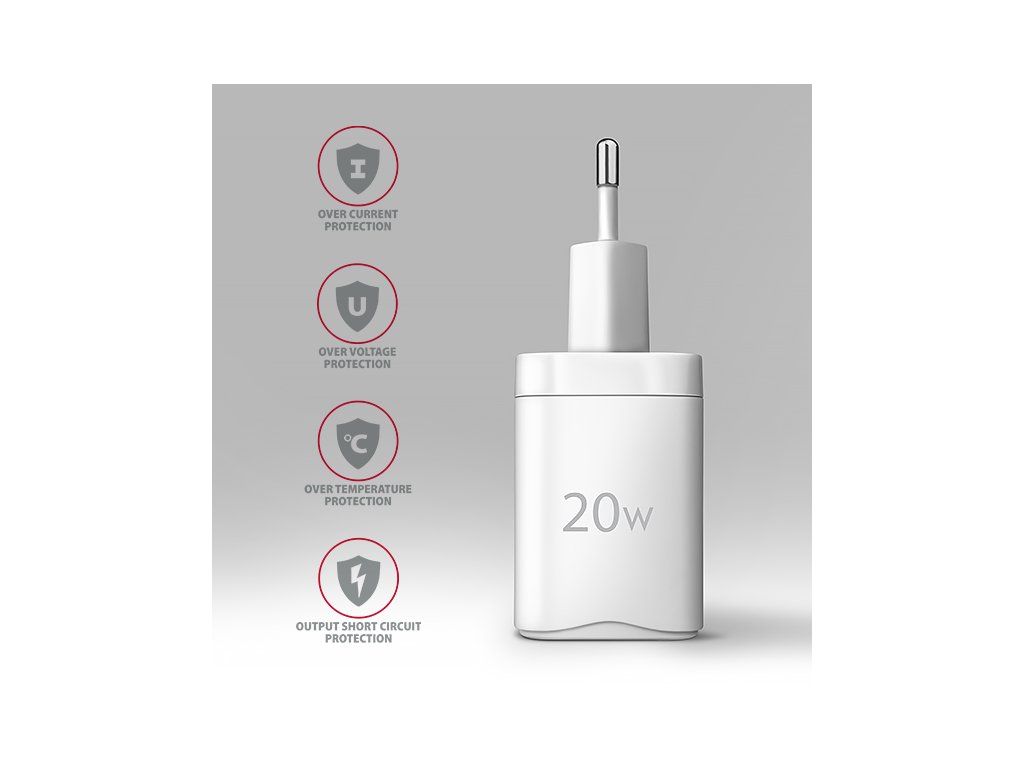 Kompaktní nabíječka do sítě AXAGON ACU-PD20W umožňuje rychlé nabíjení mobilních zařízení. Díky maximálnímu výkonu 20W dokáže nabíječka dobíjet telefony, tablety a další mobilní zařízení nejvyšší možnou rychlostí. Adaptér nabízí oboustranný USB-C konektor. Nabíječka je vybavena výstupem Power Delivery 3.0 / Quick Charge 4+ USB typu C, což umožňuje rychlé nabíjení smartphonů a tabletů výkonem až 20W. Nabíječka podporuje 20W PD nabíjení pro iPhone 12, 13, 14 a 15 a jejich modely Pro a Pro Max. Adaptér je dále kompatibilní s dalšími standardy rychlého nabíjení telefonů, jako jsou Apple iPhone, iPad, Samsung, Huawei, Honor, Xiaomi. Pokročilý systém ochran na výstupu nabíjecího adaptéru chrání nabíjené zařízení před poškozením. Funkce nabíječky také zajistí rozpoznání nabíjeného zařízení a zvolení optimální rychlosti a průběhu nabíjení. Tělo napájecího adaptéru má příjemný tvar a kompaktní velikost. Kombinace malých rozměrů a širokého rozsahu vstupního napětí dělá z této nabíječky ideálního pomocníka na cesty. Vstup: • vstupní napětí AC 100V-240V / 1A / 50-60 Hz (funkce WIV), podporuje více národních napájecích standardů • dvoukolíková euro vidlice - integrovaná v těle napáječe Výstup: • USB-C port PD (tablety, telefony) max. 20W: 5V/3A, 9V/2.22A, 12V/1.67A, PPS: 3-5V/3A, 3-11V/1A • Technologie nabíjení: PD 3.0, PD 2.0, PPS, QC4+, QC 3.0, QC 2.0, AFC, FCP, SMART, Apple PD, Apple 2.4A Maximální výkon: • maximální výkon 20W • maximální proud 3A Podporované technologie nabíjení: • Standardní nabíjení všech zařízení s podporou 5V a nabíjení Apple iPhone 5, 6, SE, 7. • SMART - nabíjení max. 5V/3A, Quick Charge 1.0, USB Battery Charging 1.2 (DCP 1.5A) a Apple 2.4A (iPad). • FCP - rychlé nabíjení pomocí protokolu Huawei Fast Charge Protocol. • AFC - rychlé nabíjení pomocí protokolu Samsung Adaptive Fast Charging. • QC - rychlé nabíjení pomocí protokolu Qualcomm Quick Charge 2.0, Quick Charge 3.0 a Quick Charge 4+. • PPS - rychlé nabíjení pomocí protokolu Programable Power Supply (součást USB PD 3.0 a QC4+). • PD - rychlé nabíjení pomocí protokolu USB Power Delivery 2.0 a Power Delivery 3.0. Příklady podporovaných telefonů a tabletů: • PD - rychlé nabíjení telefonů Apple iPhone 8, 8 Plus, X, XS, XS Max, XR, 11, 11 Pro, 11 Pro Max. • PD - rychlé nabíjení (až 20W) telefonu Apple iPhone 12, 12 Mini, 12 Pro, 12 Pro Max, 12, 12 Mini, 12 Pro, 12 Pro Max, 13, 13 Mini, 13 Pro, 13 Pro Max, 14, 14 Plus, 14 Pro, 14 Pro Max, 15, 15 Plus, 15 Pro, 15 Pro Max. • PD - rychlé nabíjení (až 20W) tabletů iPad mini, iPad Air, iPad Pro a dalších. Nabíječka podporuje funkce WIV, AIC, CC: • Wide Input Voltage - funkce širokého rozsahu vstupního napětí, chrání adaptér proti podpětí a přepětí na vstupu a umožní použití více ''národních napájecích standardů''. • Automatic Intelligent Communication - funkce automatického rozpoznání připojeného zařízení pro zvolení optimálních parametrů nabíjení. • Constant output Current - funkce udržování konstantního proudu zabraňuje kolísání výstupního výkonu, tato funkce zajišťuje stabilní průběh nabíjení. Komplexní ochrana výstupu: OCP, OVP, OTP, OSP: • Over Current Protection. Ochrana výstupu proti proudovému přetížení. • Over Voltage Protection. Ochrana proti přepětí na výstupu. • Over Temperature Protection. Ochrana proti přehřátí adaptéru. • Output Short Circuit protection. Ochrana proti zkratu na výstupu. Další vlastnosti: • rozměry těla napáječe 84 x 36 x 32 mm včetně vidlice, • hmotnost: 52 g, • materiál: nehořlavý plast. Balení v kartonové krabičce s otvorem pro zavěšení obsahuje: • bílá nabíječka do sítě, • vícejazyčný návod CZ/DE/DK/ENG/ESP/FIN/FR/GR/HR/HU/IT/NL/PL/PT/RO/RU/SK/SWE/BG/CN/TR/ARA.Dodatočné parametre