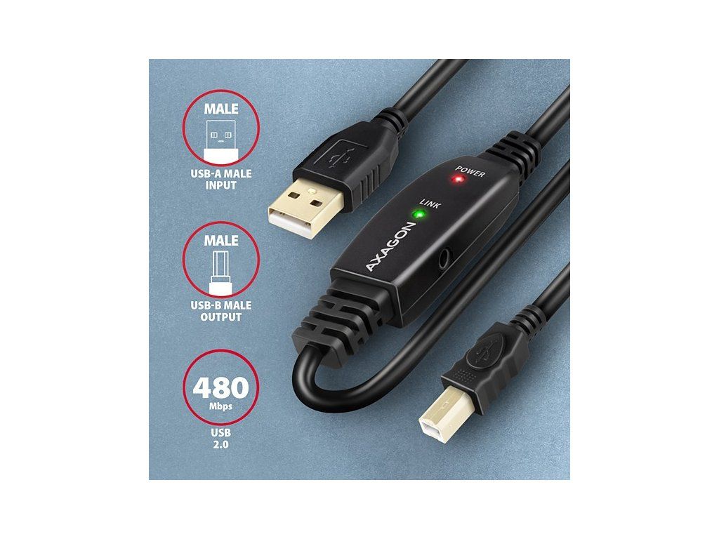 AXAGON ADR-210B, USB 2.0 A-M -> B-M aktívny prepojovací / repeater kábel, 10m ADR-210B