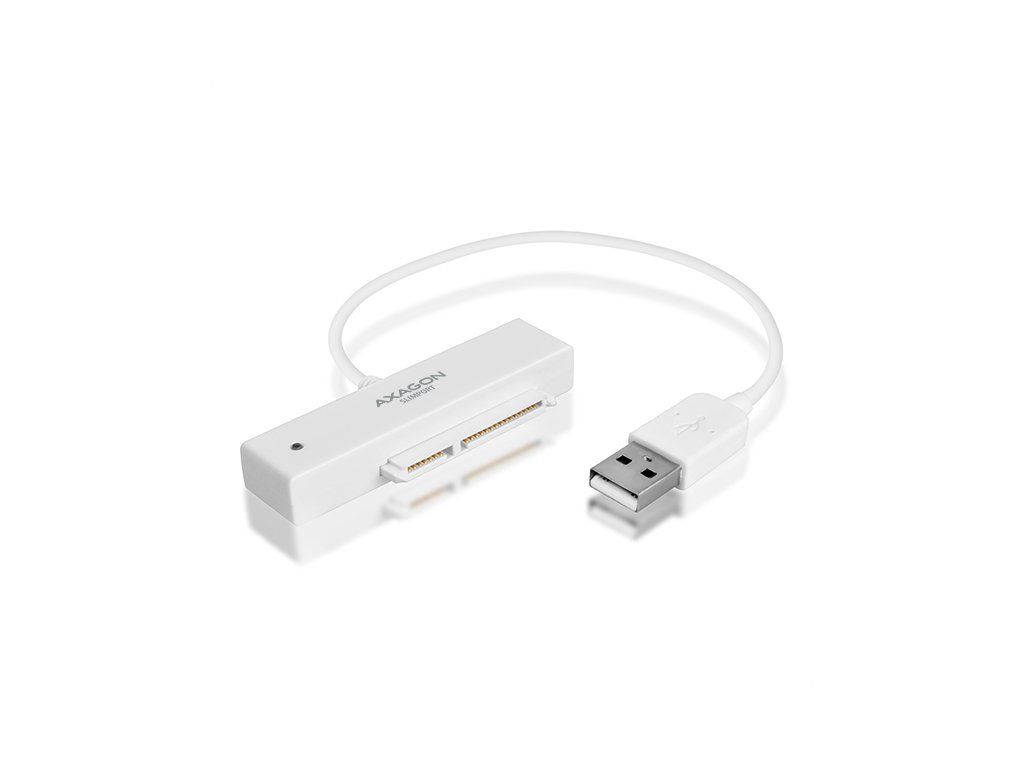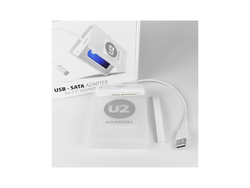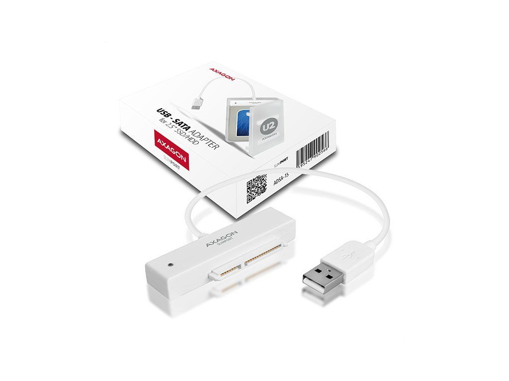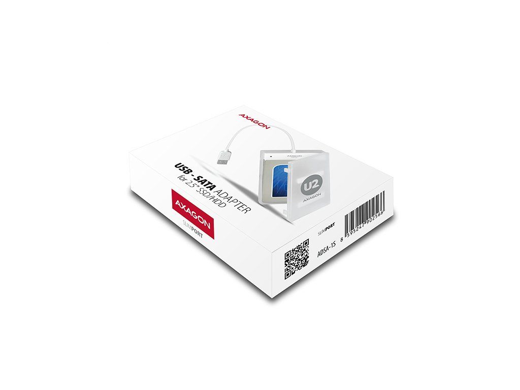 Kompaktní adaptér AXAGON ADSA-1S SLIMport s USB 2.0 rozhraním určený pro snadné připojení 2.5'' SATA disku. Šikovný pomocník pro rychlé připojení notebookového disku včetně podpory bootování. Čtení S.M.A.R.T. informací monitorujících kondici připojených disků. Podpora uspávání připojených disků. Instalaci zvládne i úplný laik - disk se připojí k adaptéru a adaptér do USB portu počítače, zbytek proběhne automaticky. Minimální rozměry a hmotnost společně s přiloženým pouzdrem pro disk předurčují produkt i pro mobilní použití. Vlastnosti: • Plně kompatibilní s USB 2.0 a zpětně kompatibilní s USB 1.1. • Podpora přenosových rychlostí 12 / 480 Mbit/s (full / high speed). • Podpora 2.5'' SATA III/II/I disků všech kapacit. • Vyhovuje Serial ATA 2.0 specifikaci (SATA/300), přenosové rychlosti až 3 Gb/s (300 MB/s). • Vyhovuje Serial ATA 1.0 specifikaci (SATA/150), přenosové rychlosti až 1.5 Gb/s (150 MB/s). • Celková propustnost / přenosová rychlost adaptéru je dána použitým USB 2.0 rozhraním (teor. 480 Mbit/s). • Podpora bootování z SSD/HDD disku připojeného přes USB adaptér. • Podpora Auto Spindown - nastavení intervalu pro uspání disku při nečinnosti. • Možnost připojení zařízení za chodu díky podpoře Hot Plug. • Plná podpora Plug and Play. • Připojení přes přímý USB type A male konektor na 20 cm dlouhém kabelu napevno spojeném s adaptérem. • Napájení po USB sběrnici. • Modrá LED dioda indikující připojení k USB portu počítače (trvalým svitem) a přenos dat (blikáním). Další údaje: • Kompaktní rozměry adaptéru 70 x 21 x 11 mm, hmotnost pouze 17 g včetně USB kabelu s délkou 20 cm. • Jednoduché plastové pouzdro pojme 2.5'' disk výšky max. 9.5mm s připojeným USB adaptérem (USB kabel je vyveden otvorem v pouzdře). • Pro tenké 7mm SSD/HDD přibaleny pěnové vycpávky pro lepší upevnění v pouzdře. • Pouzdro může sloužit také pro transport nebo úschovu samotného adaptéru bez disku včetně USB kabelu uvnitř pouzdra. • Rozměry pouzdra 122 x 78 x 19 mm, hmotnost 40 g. Podporované operační systémy: • MS Windows XP / Vista / 7 / 8 / 8.1 / 10 a novější, Windows Server 2003 / 2008 / 2012 / 2016 a novější (podporovány všechny 32- i 64-bitové verze OS Windows), Mac OS X 10.x a vyšší, Linux s jádrem 2.6.x a vyšším. • Pozn.: Ovladače jsou součástí podporovaných operačních systémů a nainstalují se zcela automaticky. Žádné jiné ovladače není třeba instalovat a nejsou ani k dispozici. Balení v kartónové krabičce s přehledně uvedenými parametry a postupem instalace obsahuje: • USB - SATA adaptér s kabelem 20 cm napevno, samolepící pěnové vycpávky pro 7 mm HDD a SSD, plastové pouzdro.Dodatočné parametre