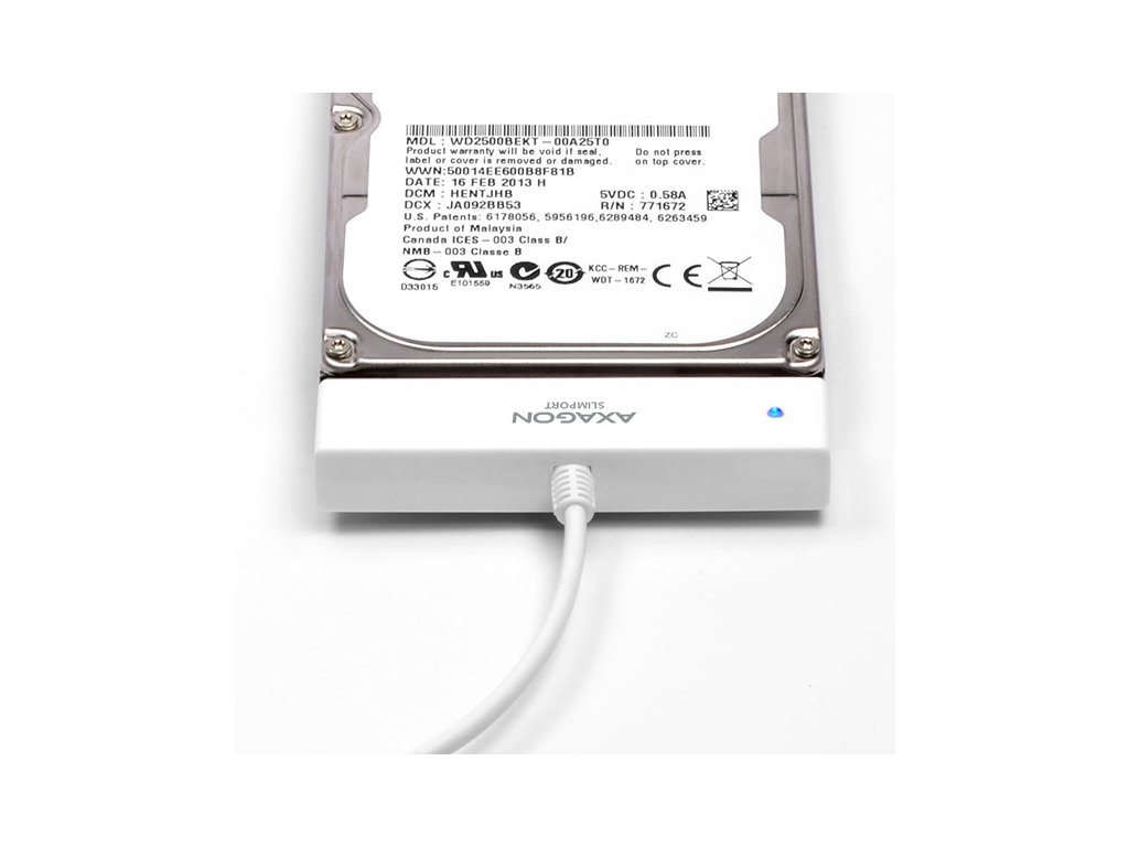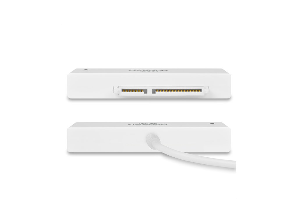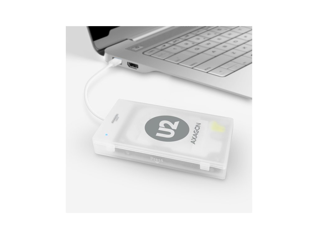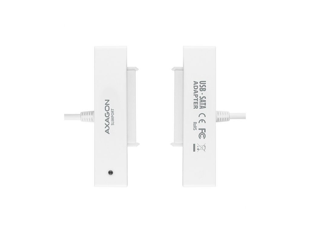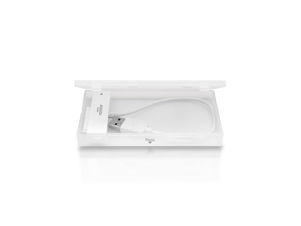 Kompaktní adaptér AXAGON ADSA-1S SLIMport s USB 2.0 rozhraním určený pro snadné připojení 2.5'' SATA disku. Šikovný pomocník pro rychlé připojení notebookového disku včetně podpory bootování. Čtení S.M.A.R.T. informací monitorujících kondici připojených disků. Podpora uspávání připojených disků. Instalaci zvládne i úplný laik - disk se připojí k adaptéru a adaptér do USB portu počítače, zbytek proběhne automaticky. Minimální rozměry a hmotnost společně s přiloženým pouzdrem pro disk předurčují produkt i pro mobilní použití. Vlastnosti: • Plně kompatibilní s USB 2.0 a zpětně kompatibilní s USB 1.1. • Podpora přenosových rychlostí 12 / 480 Mbit/s (full / high speed). • Podpora 2.5'' SATA III/II/I disků všech kapacit. • Vyhovuje Serial ATA 2.0 specifikaci (SATA/300), přenosové rychlosti až 3 Gb/s (300 MB/s). • Vyhovuje Serial ATA 1.0 specifikaci (SATA/150), přenosové rychlosti až 1.5 Gb/s (150 MB/s). • Celková propustnost / přenosová rychlost adaptéru je dána použitým USB 2.0 rozhraním (teor. 480 Mbit/s). • Podpora bootování z SSD/HDD disku připojeného přes USB adaptér. • Podpora Auto Spindown - nastavení intervalu pro uspání disku při nečinnosti. • Možnost připojení zařízení za chodu díky podpoře Hot Plug. • Plná podpora Plug and Play. • Připojení přes přímý USB type A male konektor na 20 cm dlouhém kabelu napevno spojeném s adaptérem. • Napájení po USB sběrnici. • Modrá LED dioda indikující připojení k USB portu počítače (trvalým svitem) a přenos dat (blikáním). Další údaje: • Kompaktní rozměry adaptéru 70 x 21 x 11 mm, hmotnost pouze 17 g včetně USB kabelu s délkou 20 cm. • Jednoduché plastové pouzdro pojme 2.5'' disk výšky max. 9.5mm s připojeným USB adaptérem (USB kabel je vyveden otvorem v pouzdře). • Pro tenké 7mm SSD/HDD přibaleny pěnové vycpávky pro lepší upevnění v pouzdře. • Pouzdro může sloužit také pro transport nebo úschovu samotného adaptéru bez disku včetně USB kabelu uvnitř pouzdra. • Rozměry pouzdra 122 x 78 x 19 mm, hmotnost 40 g. Podporované operační systémy: • MS Windows XP / Vista / 7 / 8 / 8.1 / 10 a novější, Windows Server 2003 / 2008 / 2012 / 2016 a novější (podporovány všechny 32- i 64-bitové verze OS Windows), Mac OS X 10.x a vyšší, Linux s jádrem 2.6.x a vyšším. • Pozn.: Ovladače jsou součástí podporovaných operačních systémů a nainstalují se zcela automaticky. Žádné jiné ovladače není třeba instalovat a nejsou ani k dispozici. Balení v kartónové krabičce s přehledně uvedenými parametry a postupem instalace obsahuje: • USB - SATA adaptér s kabelem 20 cm napevno, samolepící pěnové vycpávky pro 7 mm HDD a SSD, plastové pouzdro.Dodatočné parametre