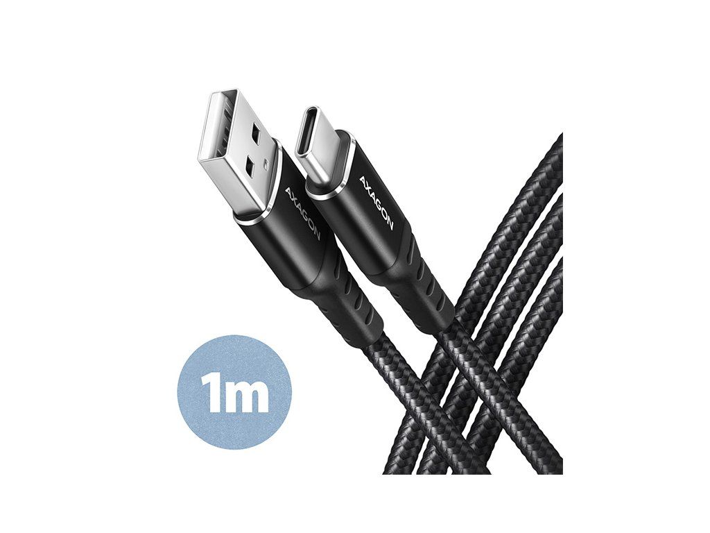 AXAGON BUCM-AM10AB, HQ kábel USB-C <-> USB-A, 1m, USB 2.0, 3A, ALU, oplet, čierny BUCM-AM10AB