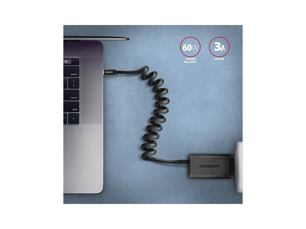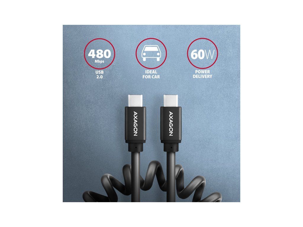 Kroucený propojovací USB-C <-> USB-C datový a nabíjecí AXAGON BUCM-CM10TB TWISTER USB 2.0 kabel s konektory USB-C male na obou koncích. Kabel je navržen pro synchronizaci dat a nabíjení notebooků, telefonů, tabletů a dalších mobilních zařízení. Kabel podporuje přenos dat rychlostí až 480 Mb/s, je kompatibilní s nabíjecími technologiemi Power Delivery 60W, Quick Charge, Samsung AFC, Huawei FCP, SMART a dalšími. Připojené zařízení lze nabíjet proudem až 3A. Odolný datový a napájecí kabel s prodlouženou životností je opatřen kovovými koncovkami, konektory s poniklovaným povrchem a pozlacenými kontakty. Vodiče kabelu jsou vyrobené z pocínované bezkyslíkaté mědi. Kvalitní izolace kabelu, vyrobená z flexibilního TPE, zaručuje maximální odolnost, ale zachovává i dostatečnou ohebnost. Díky kroucenému a natahovacímu provedení kabel zabírá minimum místa a je tak ideálním doplňkem do auta. Ve zkráceném stavu je kabel dlouhý jen 35 cm a nikde nepřekáží. V nataženém stavu pohodlně dosáhne 60 cm daleko od zásuvky. Napájecí vodiče 22AWG (nižší číslo = větší průřez a nižší odpor vodiče) garantují rychlé nabíjení telefonů a dalších mobilních zařízení. Kabel podporuje také nabíjení notebooků technologií Power Delivery 60W. Datové vodiče 30AWG spolu s kvalitním stíněním, zajišťují spolehlivý přenos dat. Dvojité stínění chrání přenášené signály před nepříznivým rušením. Odolná kabelová průchodka zmírňuje nebezpečný ohyb kabelu. Mechanickou odolnost kabelu zvyšují také hliníkové kryty koncovek. Konektory: • USB-C (M) male / samec • USB-C (M) male / samec Další vlastnosti: • DATA SYNC & FAST CHARGING - současný přenos dat a dobíjení baterie mobilního zařízení. • USB 2.0, kompatibilní s USB 1.1. • Podpora přenosových rychlostí 480 / 12 / 1.5 Mb/s (High / Full / Low speed). • Podporované technologie nabíjení: Power Delivery 60W (20V/3A), Qualcomm Quick Charge 2.0 / 3.0 / 4+, Samsung Adaptive Fast Charging, Huawei Fast Charge Protocol, SMART Charging a další. • Podpora rychlého nabíjení proudem až 3A. • Kabel obsahuje napájecí vodiče 22AWG, datové vodiče 30AWG. • Vodiče z pocínované bezkyslíkaté mědi pro omezení oxidace, zvýšení vodivosti a čistý signál bez zkreslení. • Stínění pokovenou fólií a opletením z pocínované mědi minimalizuje rušení a zabraňuje ztrátě signálu. • Poniklované konektory a pozlacené kontakty zamezují oxidaci a zajišťují spolehlivé spojení. • Vhodný pro notebooky, mobilní telefony a smartphony, tablety, powerbanky a další mobilní zařízení s USB-C konektorem. Další údaje: • Délka kabelu 60 cm v nataženém stavu, 35 cm ve zkráceném stavu, • vnější průměr kabelu 4.2 mm. Balení v zataveném fóliovém obalu s potiskem a s otvorem pro zavěšení obsahuje: • USB-C M <-> USB-C M kroucený kabel černé barvy.Dodatočné parametre