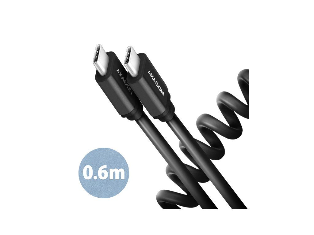 AXAGON BUCM-CM10TB, TWISTER kábel USB-C <-> USB-C, 0.6m, USB 2.0, PD 60W 3A, ALU, tpe, čierny BUCM-CM10TB